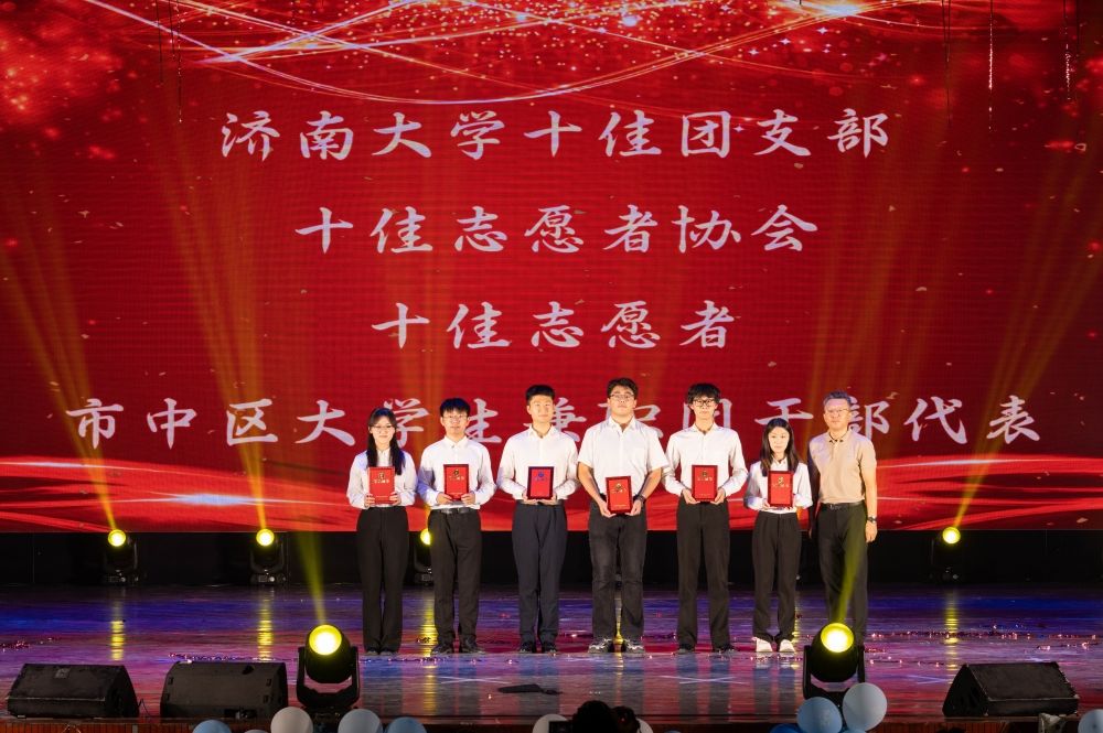 为表彰先进,树立榜样,集中展示学院育人成果,学院对表现突出的“朋辈之星”学生代表进行表彰。续铁为宋健奖学金获得者颁奖,李强为济大繁星·求真之星、太阳集团tyc234cc生润生生涯奖学金获得者颁奖,党委保卫部、安全管理处部(处)长李荣光为国家奖学金获得者代表颁奖,教务处处长、教学质量与评估办公室主任、招生办公室主任陈贞翔为科创竞赛国家级奖励学生代表颁奖,校团委书记胡春毅为太阳集团tyc234cc十佳团支部、十佳志愿者协会、十佳志愿者、市中区大学生兼职团干部代表颁奖,党委宣传部文化中心主任赵华磊和党委学生工作部(处)副部(处)长马杰共同为优秀毕业生代表颁奖。