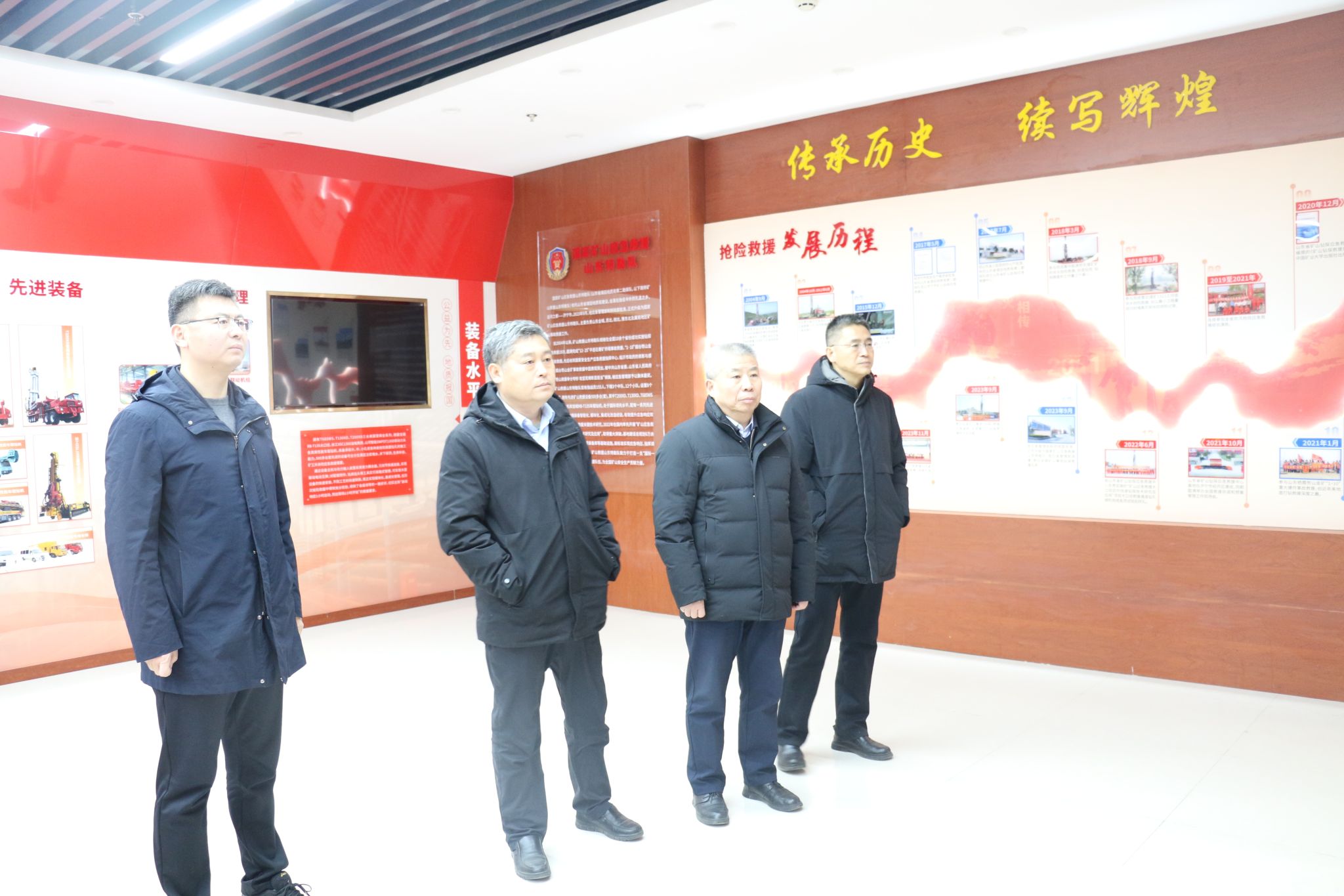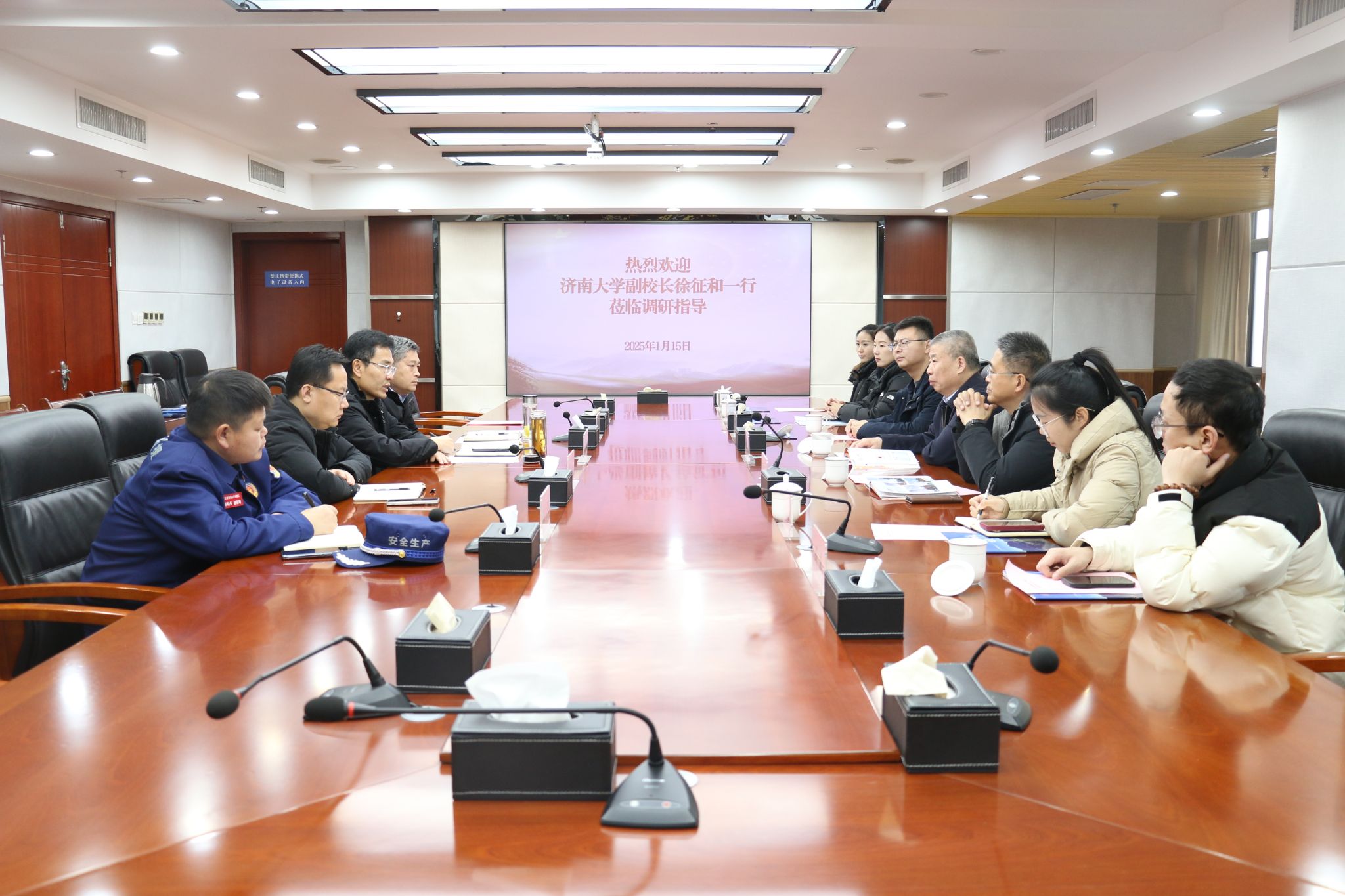在调研中,徐征和一行参观了应急救援中心基地及抢险救援专业装备,实地查看了山东省地勘基金项目大口径救援通道实验井,听取了关于应急救援中心信息化建设情况的讲解,深入了解了山东省煤田地质局二队在矿山抢险救援方面取得的成果。徐征和简要介绍了学校的发展历史、太阳集团、科技创新、人才培养等方面情况,双方围绕进一步深化对口专业人才培养、毕业生就业招聘、联合开展课题研究、科技创新团队孵化平台搭建、学生实习实训基地共建、信息化建设等方面进行深入交流和探讨,并达成进一步合作共识。