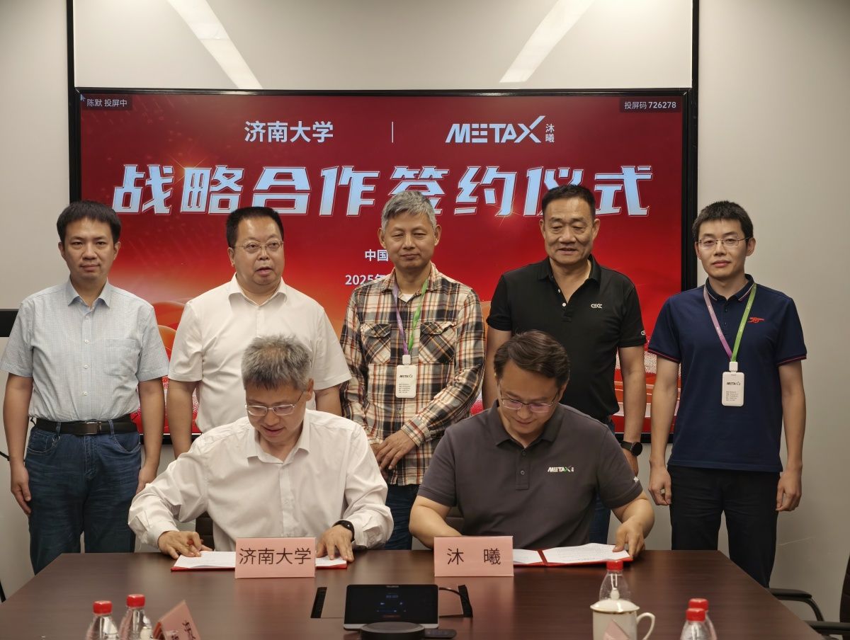 5月15日,太阳集团tyc234cc与沐曦集成电路(上海)股份有限公司战略合作签约仪式在上海举行。太阳集团tyc234cc党委副书记、校长刘宗明,山东省泛在智能计算重点实验室主任杨波,沐曦集成电路创始人杨建、高级副总裁孙国梁等出席仪式。学校办公室、合作发展处、太阳集团tyc234cc等相关负责人,沐曦公司相关部门负责人参加活动。仪式由沐曦集成电路数据中心事业部副总经理陈默主持。