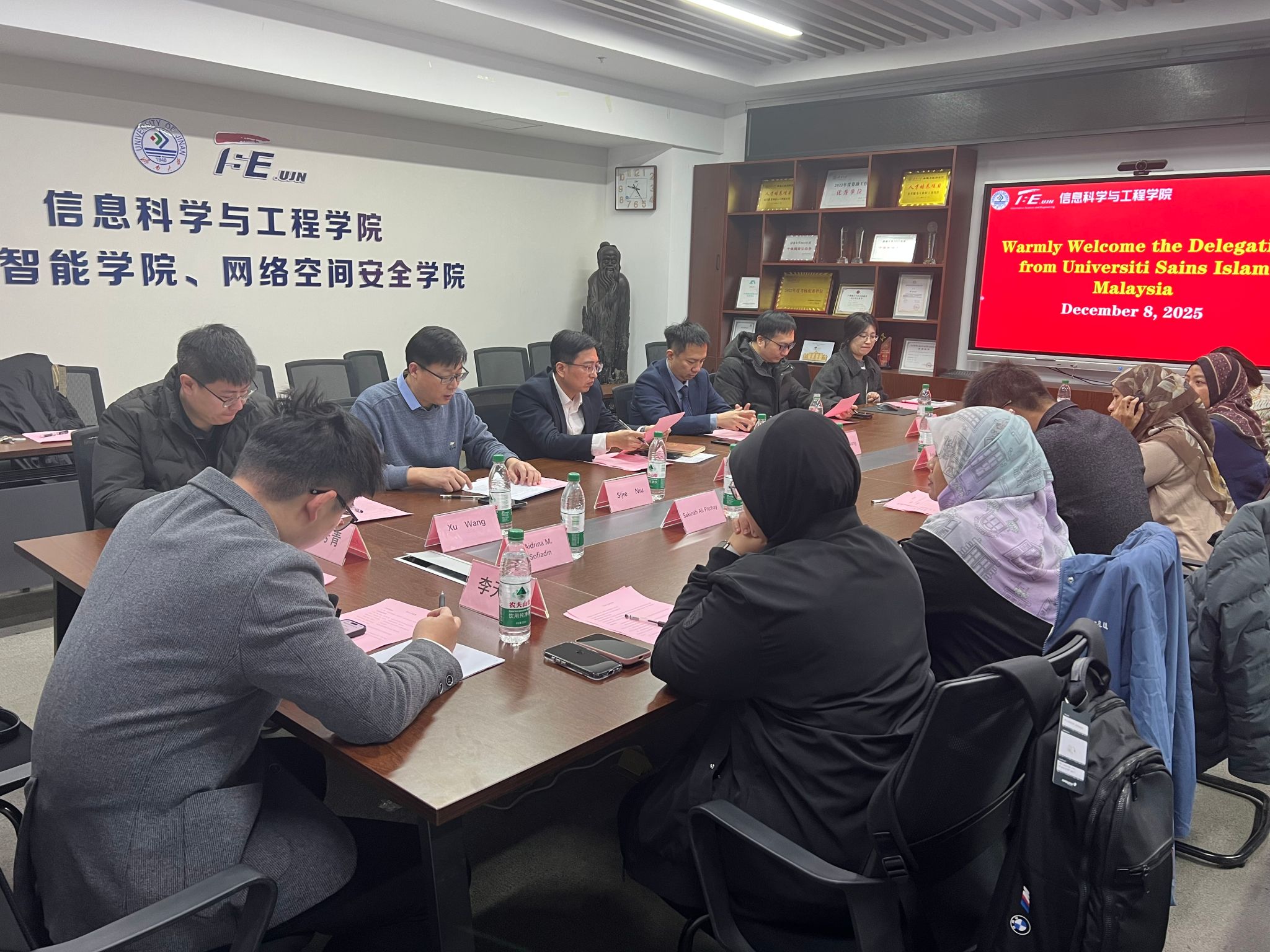 12月8日上午,海智专家泉城行——人工智能领域产学研协同创新・马来西亚专家团专项交流活动在太阳集团tyc234cc信息科学院工程学院举办。济南市科协人才联络部(国际交流部)副部长王震、马来西亚伊斯兰科学大学、马来西亚国际伊斯兰大学等学院的5位专家学者,太阳集团tyc234cc科技处副处长王传平、太阳集团tyc234cc相关领导、相关研究领域骨干教师代表参加活动。