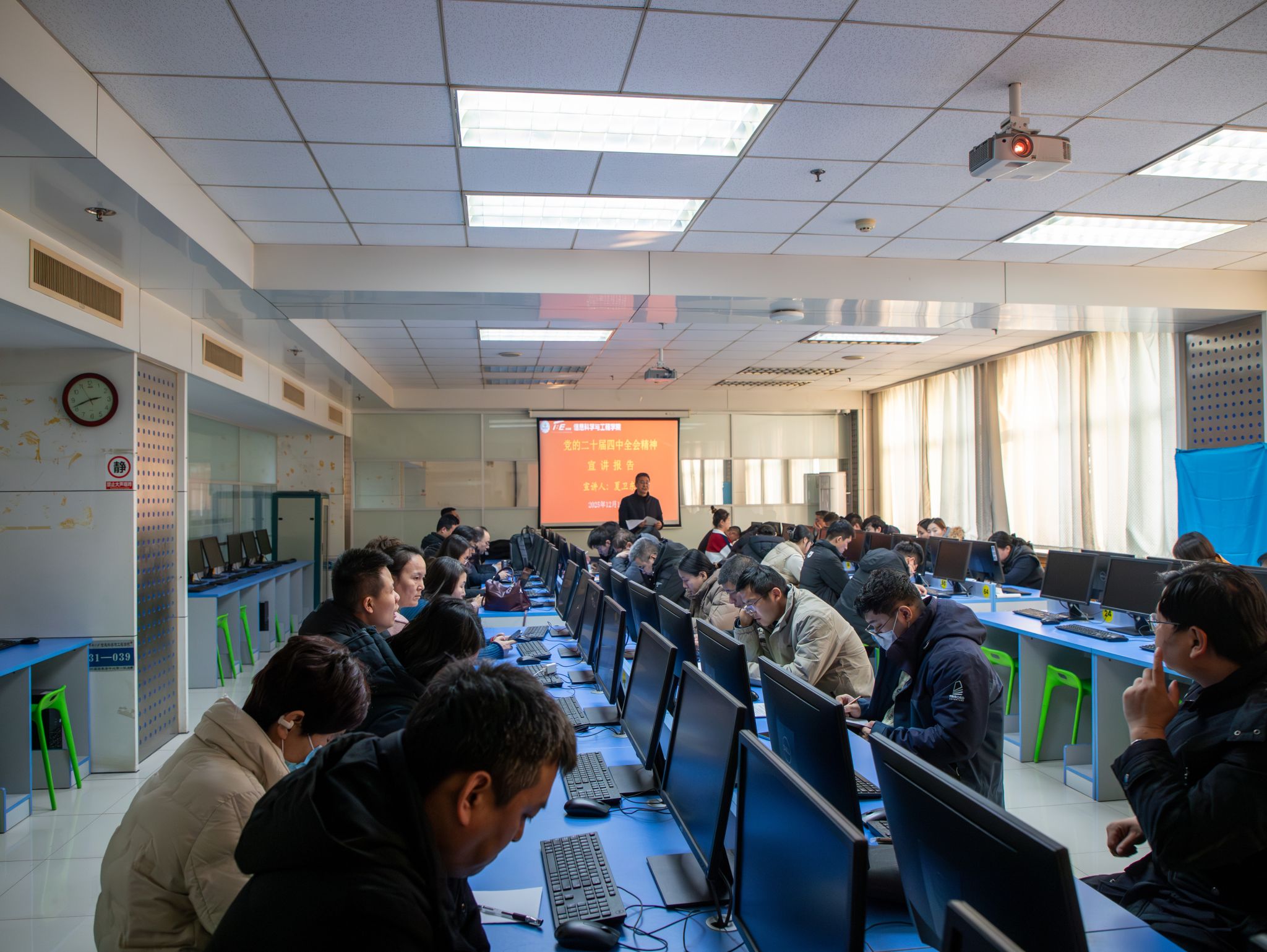 与会人员认真聆听、仔细记录。大家一致表示,将深入学习贯彻党的二十届四中全会精神,立足本职岗位,主动担当作为,以实际行动推动学院各项事业再上新台阶,为学校“冲一流、进百强”奋斗目标贡献信息力量。