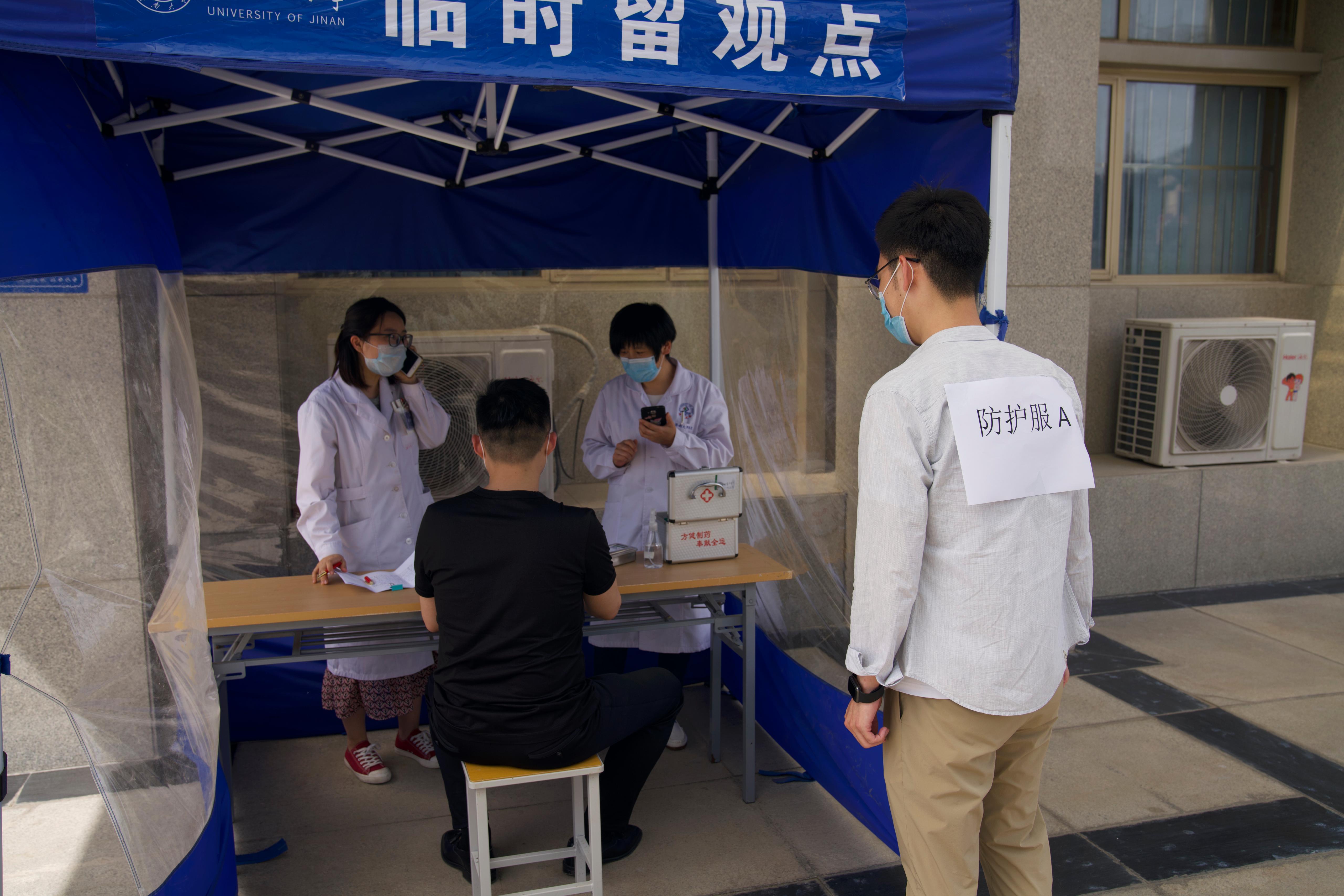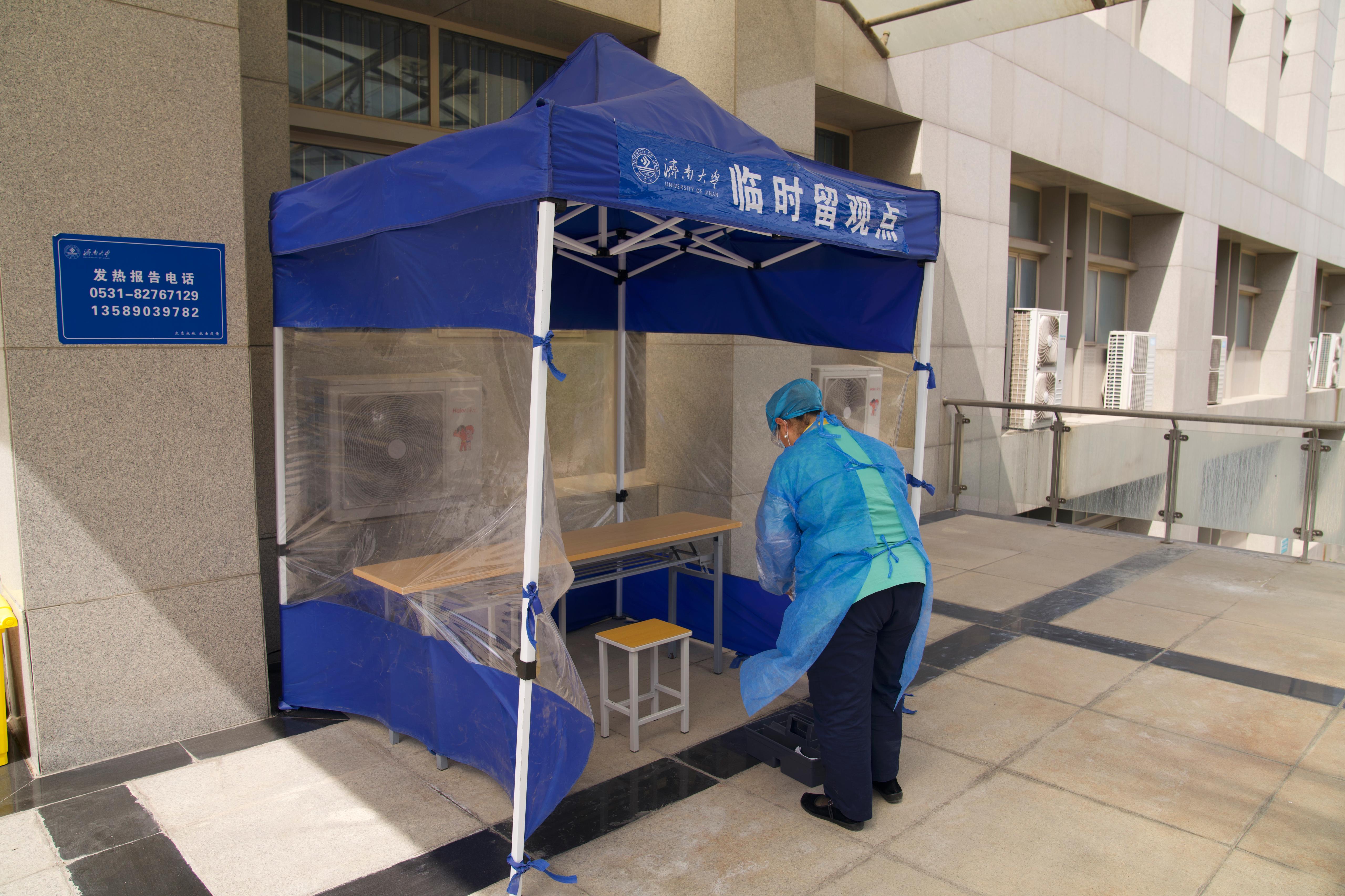 演练中,学院按照相关要求,对第12教学楼入口、实验室等重点场景进行了现场模拟,并对每个场景中可能出现的突发情况进行应急处置。若出现体温检测异常或自感异常学生,从接报“异常”学生开始,学生辅导员、场地联络员、学院联络员、校医院医务人员、后勤管理人员、学校疫情防控工作领导小组等迅速行动,对体温异常学生留观转诊流程与校内防控工作应急处置流程同步高效运转,完成了体温异常学生处理、密切接触者信息登记及隔离、异常情况上报、应急处置启动、环境消杀及后续工作安排等重要应急处置环节。整个演练过程紧张有序,严格按照预定流程进行,重点模拟了人群中检测出体温异常人员和自感不适等突发情况,各个环节分工明确、反应迅速、配合密切、有条不紊,取得预期效果。