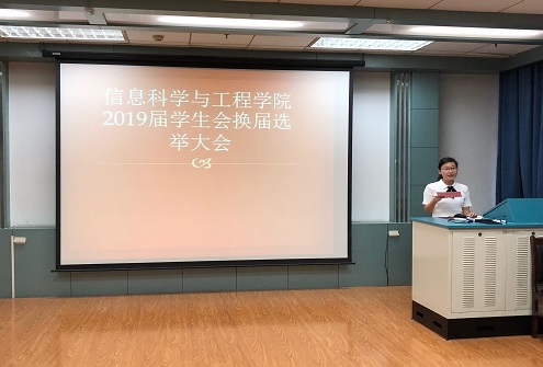 本次换届选举大会由2018届学生会主席韩欣宇主持,18:30宣布换届选举大会正式开始,并说明了活动流程。首先,由学生会各位主席进行述职,向参选部长们介绍主席团的工作内容,进行一年以来的工作总结,展示了一年的工作成果,并对部长们的工作提出表扬,为下一任主席团成员送出寄语。主席团的演讲让参选部长们对主席的工作有了明确的认识,对日后的工作有了更加深刻的理解。之后,在部长团竞选环节中,由参选部长进行演讲,并由老师和18届主席团对部长进行考核提问。参选的部长们总结了自己上一学年的工作内容,并展示了对下一年当选主席后的工作计划和目标。面对老师们提出的问题,各位参选部长给出独特新颖的完美回答,充分展现了他们优秀的个人素质和突出的领导能力。