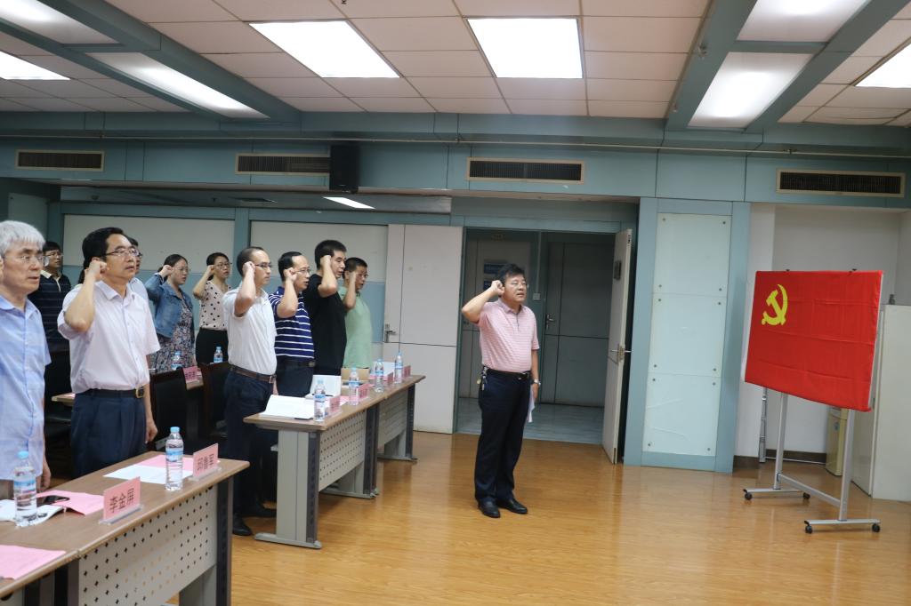 在雄壮的国歌声中,大会拉开帷幕。董晓宁书记宣读2019年上半年新发展党员名单。全体党员面向党旗举起右拳,老党员重温入党誓词,新党员入党宣誓,表达了为共产主义理想奋斗终身的崇高信仰与坚定信念。