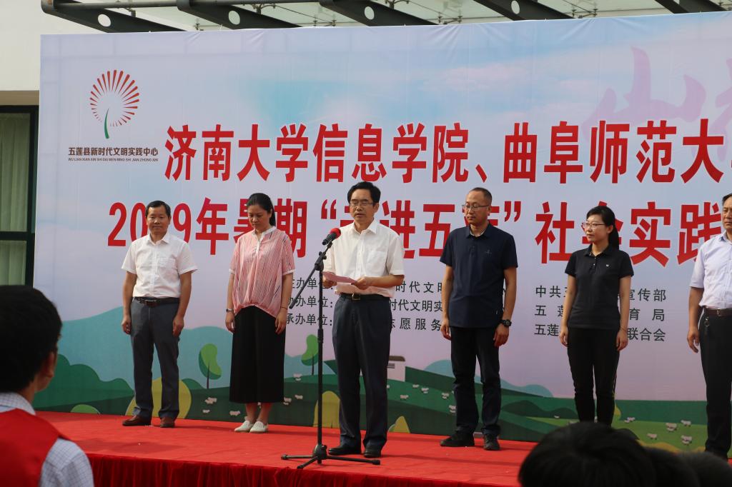 在实践现场,五莲县新时代文明实践中心精心组织了此次社会实践活动的启动仪式。五莲县县委常委、宣传部长、教工委书记王辉出席本次仪式。仪式由五莲县新时代文明实践中心主任王涛主持。