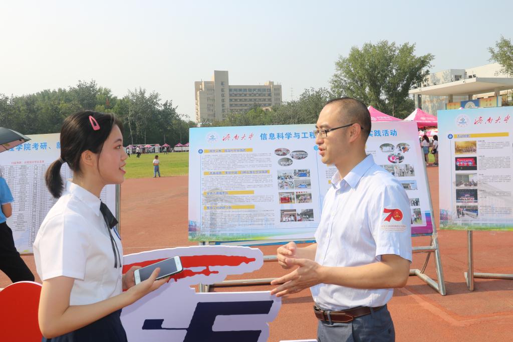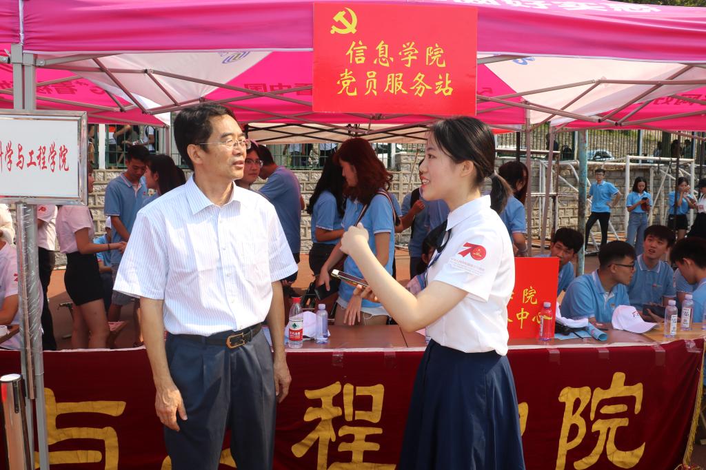 随后,学生记者又对学院院长陈贞翔进行了采访。陈院长表示,今年的迎新现场“信息化”元素随处可见,数字化迎新在很多方面都得到了展现。比如,新生报到前,就已经可以通过微信或者其他的信息渠道了解学校的基本情况,包括专业设置、宿舍分布、需求信息等。他表示,希望同学们在今后的学习工作中能充分发挥专业特色,将信息学科的优势贯穿到生活中的每一个环节。2019级辅导员刘正元老师说,希望大一新生能够做到全面发展,提升自身综合素质,尽快适应大学生活,同时要平衡好学习、工作和生活的关系,养成良好的生活习惯。
