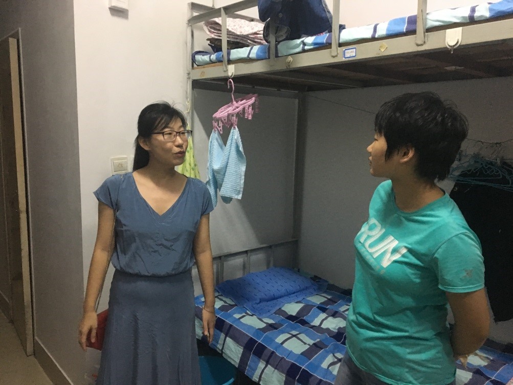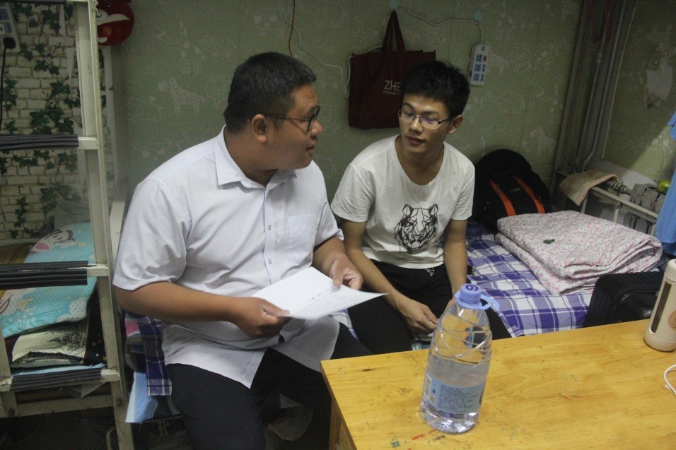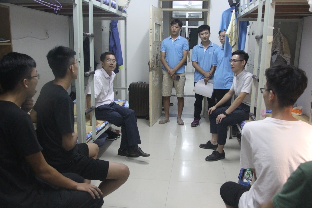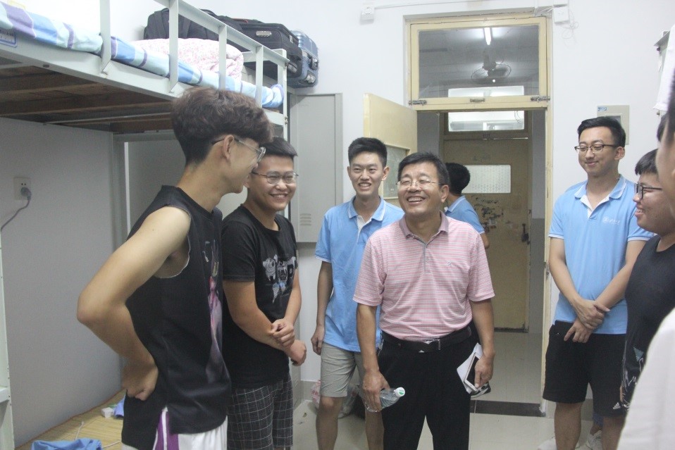 为了解新生寝室入住情况,便于新生更快地融入大学生活,9月6日晚上7点,学院党委书记邱鲁军、院长董吉文、副院长陈贞翔、党委副书记副院长董晓宁以及新生辅导员和学办老师对新生宿舍进行了走访,给新生送去了温暖。