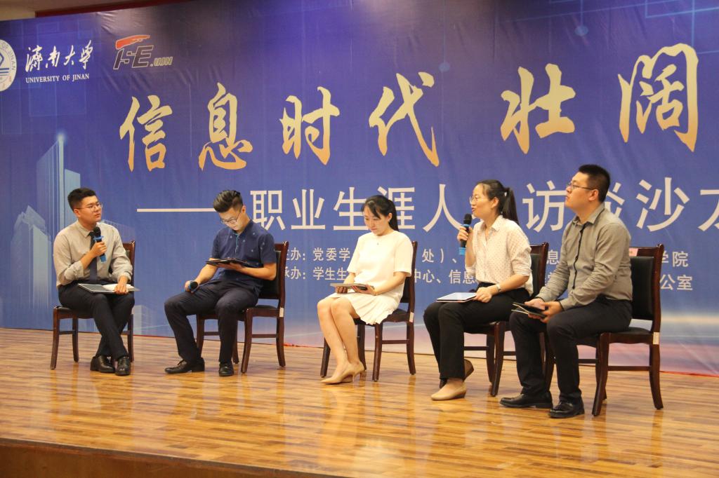 本次活动邀请了四位重量级嘉宾,分别是山大地纬软件股份有限公司人力资源部部长孔祥彦女士,中国联合网络通信有限公司济南软件研究院计费分中心项目经理王晓明先生,山东中创软件工程股份有限公司人力资源部总经理陈曦女士和南开大学等高校特聘讲师、智联招聘校园及国际业务事业部华北区高级渠道经理郑亚南先生。活动在线上与线下同步进行,线下进行生涯主题演讲和生涯访谈,线上采用网络直播和视频录播形式,以便让广大学子了解生涯、认识生涯、学习生涯。