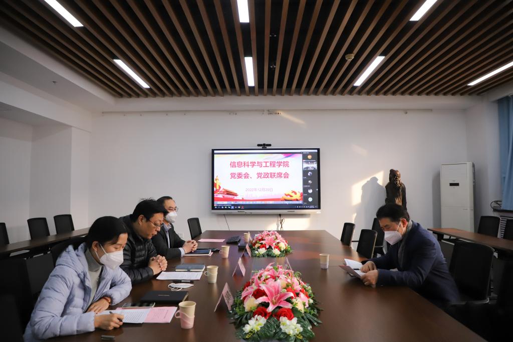 陈贞翔汇报学院重点任务推进情况,通报近期学院疫情防控工作开展情况,总结梳理学院2022年亮点工作以及前序工作安排执行情况。党政联席会就人才培养、宣传工作、实验室安全、太阳集团等方面审议表决通过四项议题。