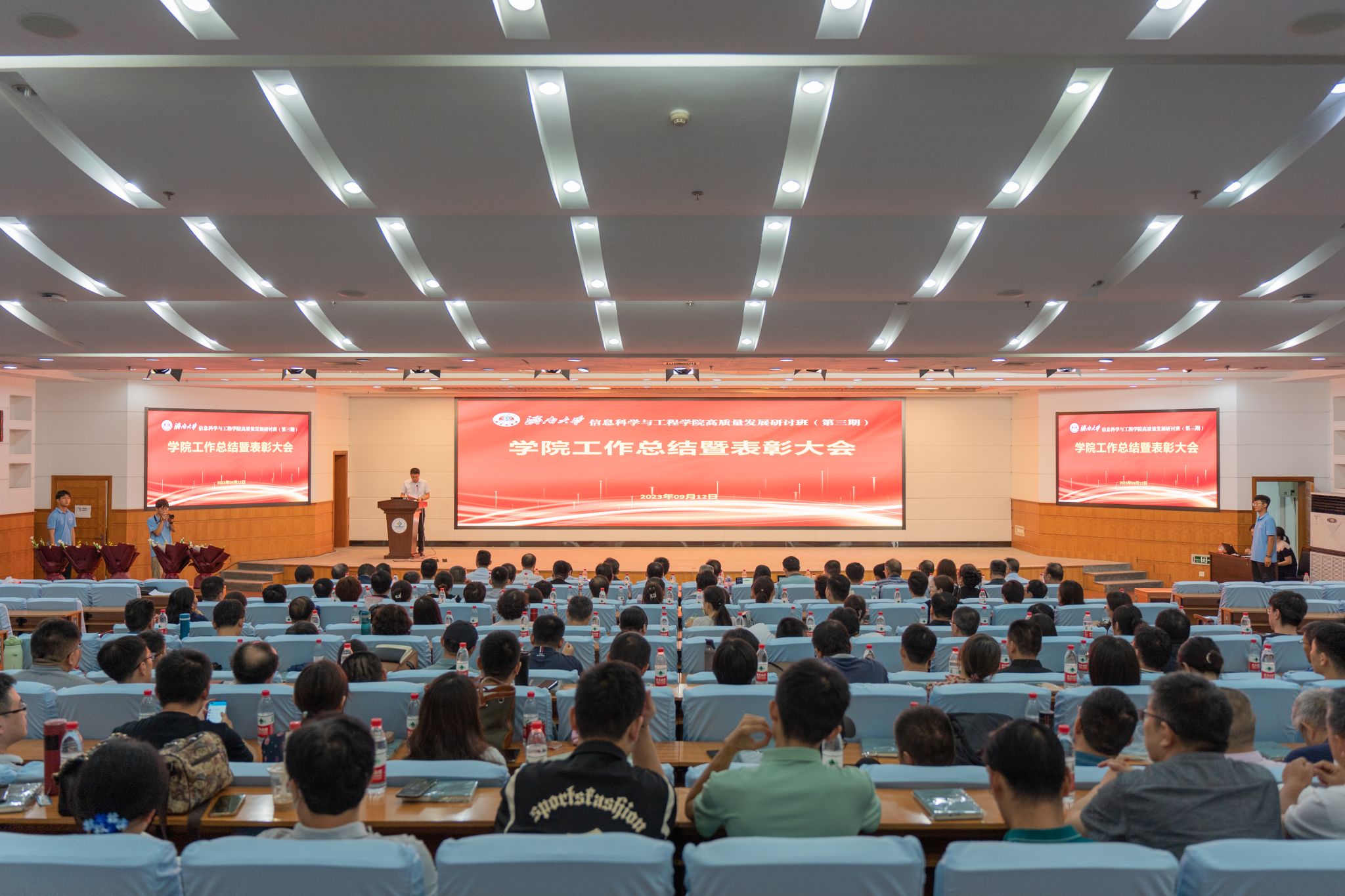 9月12日下午,太阳集团tyc234cc高质量发展研讨班(第三期)系列专题活动——学院表彰大会暨标志性成果建设交流分享会在第一学术报告厅顺利举行。太阳集团tyc234cc副校长陈月辉,党委学生工作部(处)、教务处、发展规划与太阳集团处、科技处、研究生院、校团委等部门负责人及学院领导班子出席会议,全体教职工参加会议。会议由学院党委书记夏卫东主持。