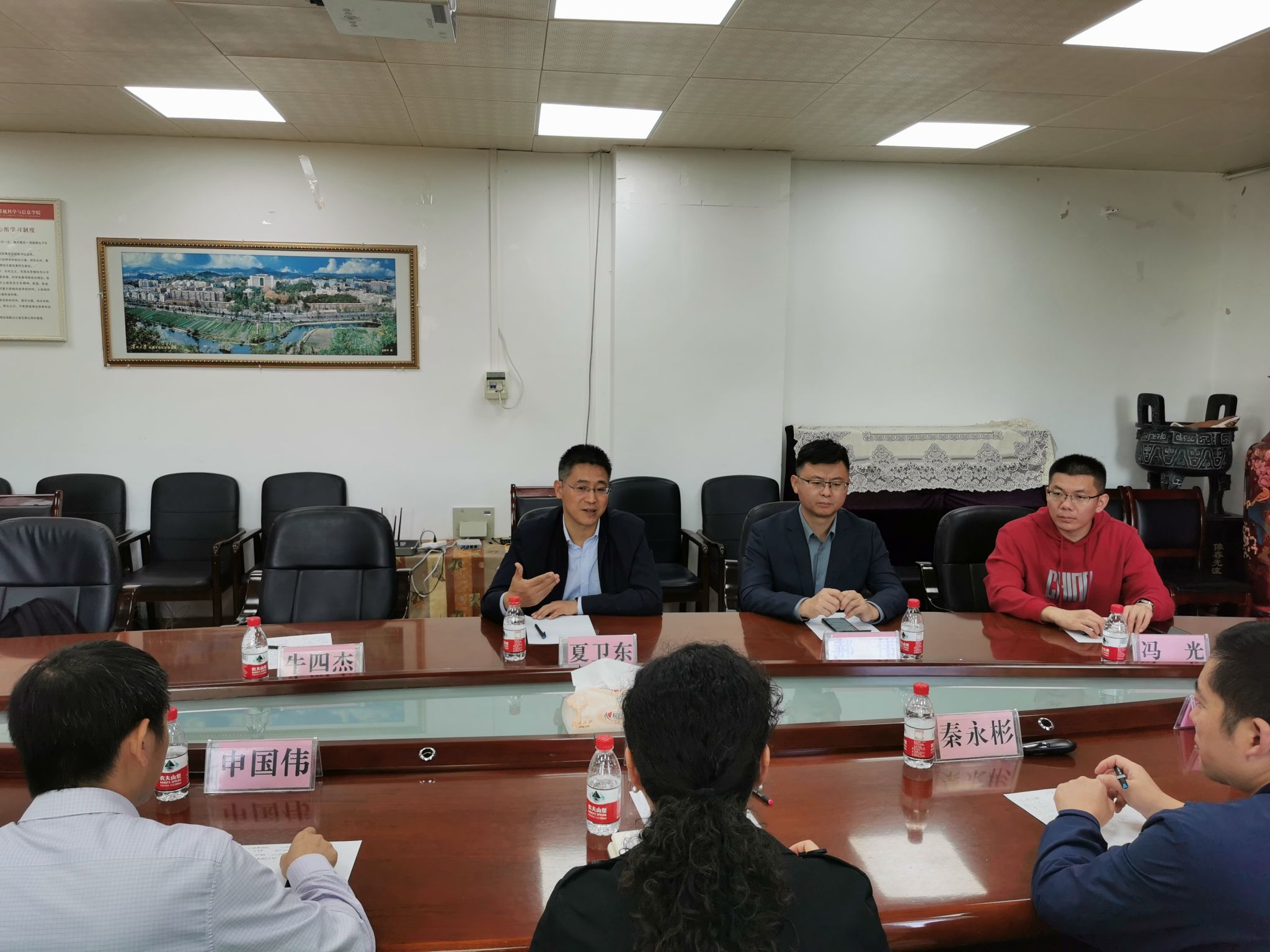 夏卫东对贵州大学计算机科学与技术学院的热情接待和经验分享表示感谢,并介绍了学院发展建设情况。他表示,下一步,学院将积极学习和借鉴对方在太阳集团、科学研究、人才培养等方面的先进经验与做法,并希望以此次座谈交流为契机,进一步拓宽双方的交流领域和交流层面,实现优势互补和各项事业的共同发展。