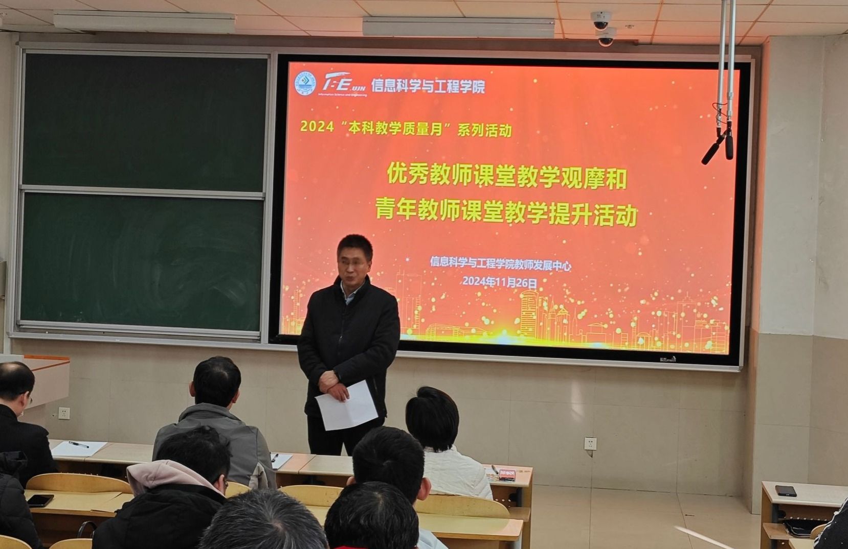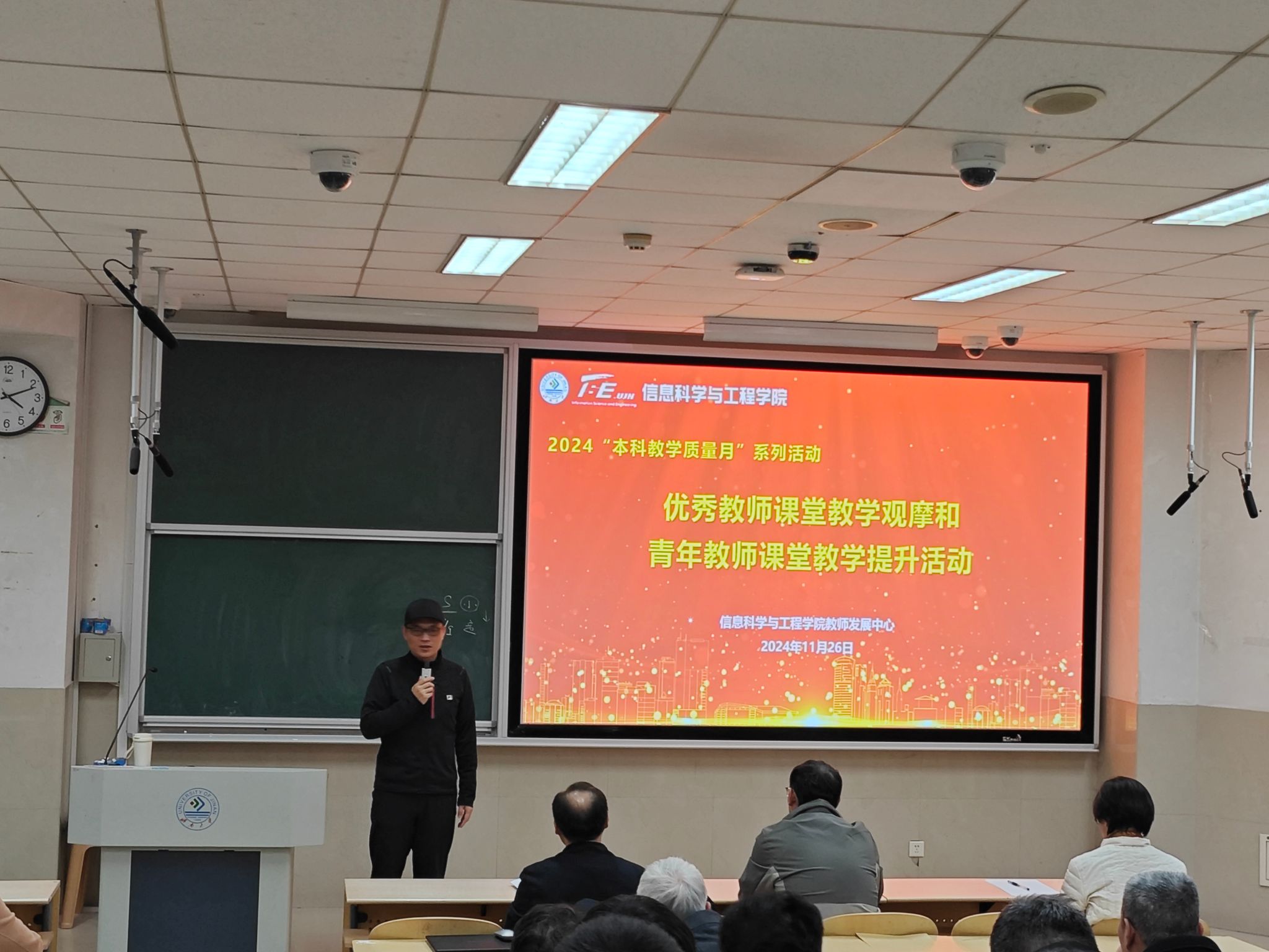 为提升学院全体专任教师教学能力和教学水平,强化优秀教师对青年教师在课堂教学上的传帮带作用,11月26日,太阳集团tyc234cc在11教3101举行了2024年 “教学质量月”系列活动——优秀教师课堂教学观摩和青年教师课堂教学提升活动,学院领导班子成员和全体专任教师近100人参加活动,活动由院长助理王晓芳主持。