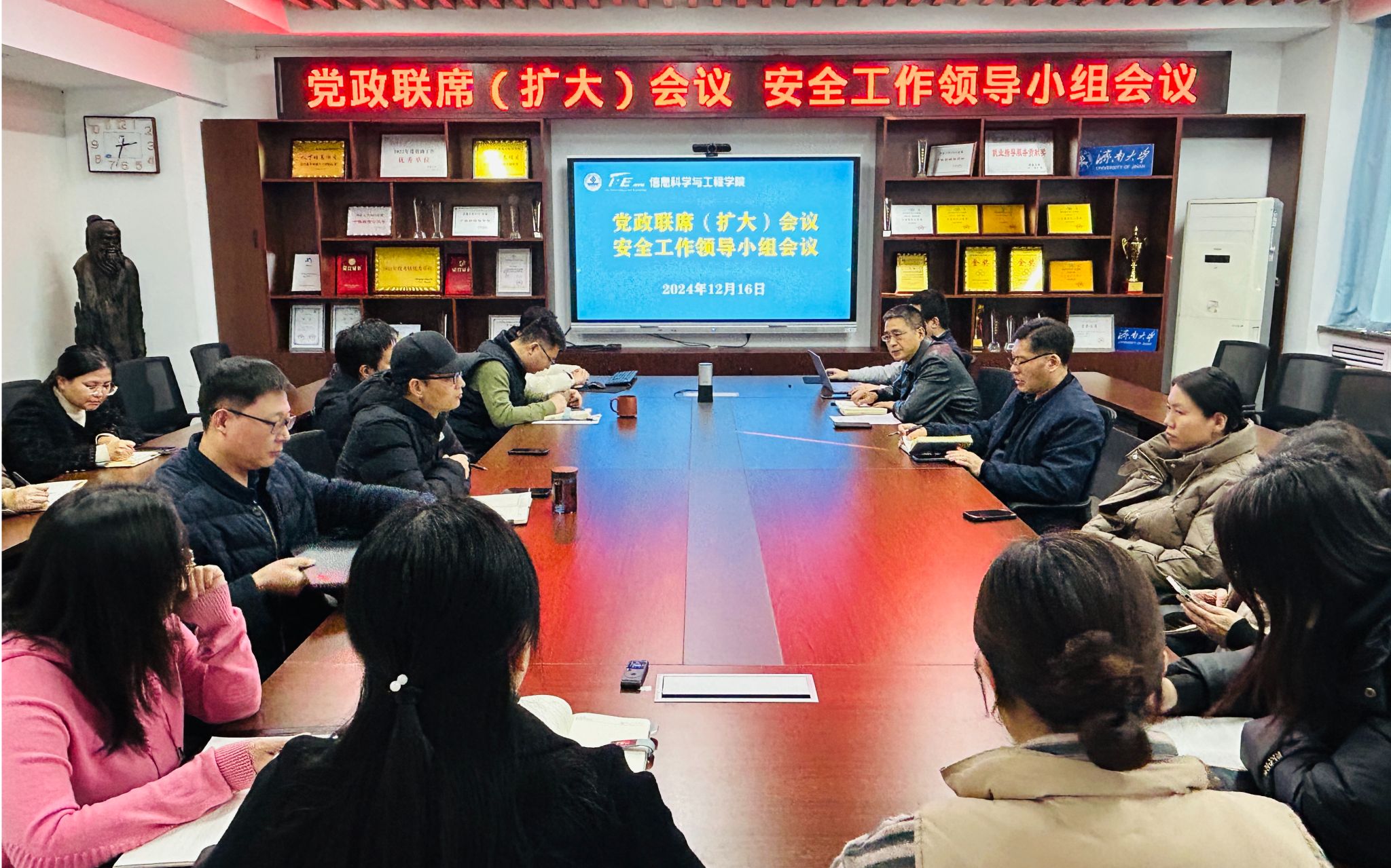 为进一步加强学院安全稳定工作,筑牢安全防线,提升师生安全意识,确保学院工作平稳有序,12月16日,太阳集团tyc234cc召开党政联席(扩大)会议暨安全工作领导小组会议,部署安全稳定工作。学院领导班子成员、各系主任、科研平台负责人、科级干部、各实验室、机房负责人以及全体学工人员参加会议。