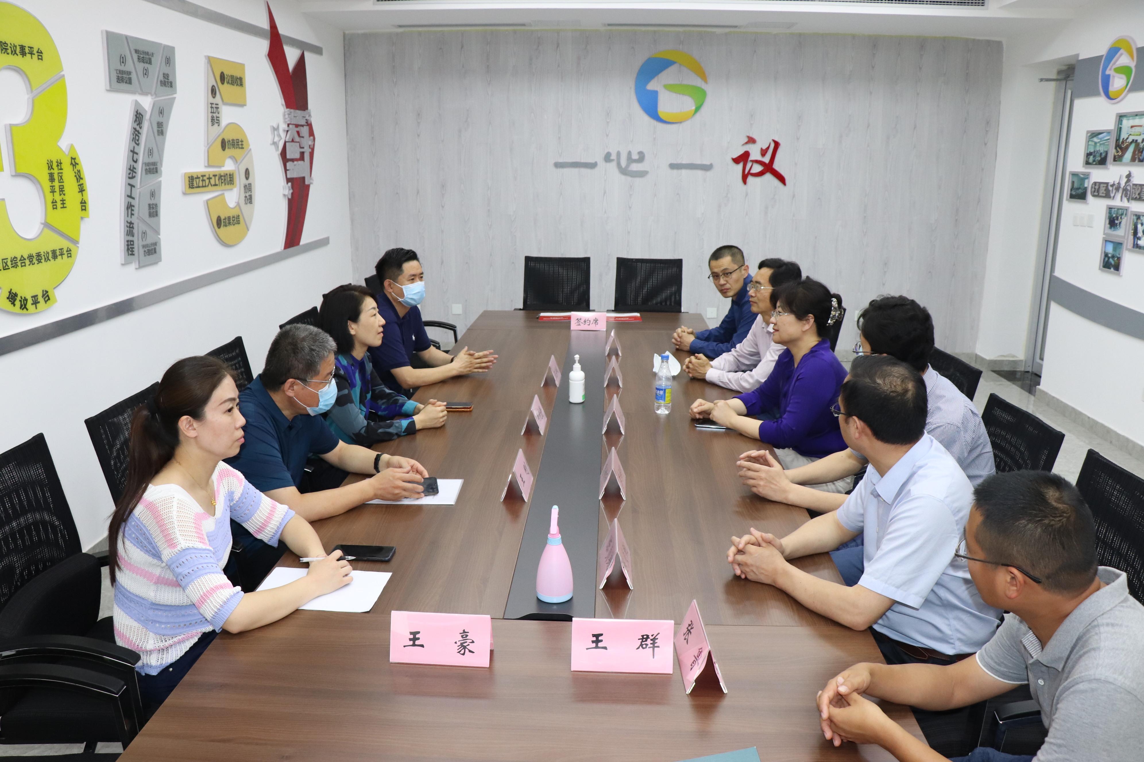 为进一步发挥校地合作优势,落实太阳集团tyc234cc与市中区的全面战略合作协议,6月2日,太阳集团tyc234cc与市中区杆石桥街道办事处共建合作协议签署仪式在乐山小区社区“一心一议”会议室举行。太阳集团tyc234cc党委常委、副校长李光红,太阳集团tyc234cc纪委副书记兼纪委、监察专员办公室综合处处长李祥印,太阳集团tyc234cc党委书记邱鲁军,院长陈贞翔,杆石桥街道党工委书记燕晓静,杆石桥街道办事处主任孔令斌等出席签约仪式。