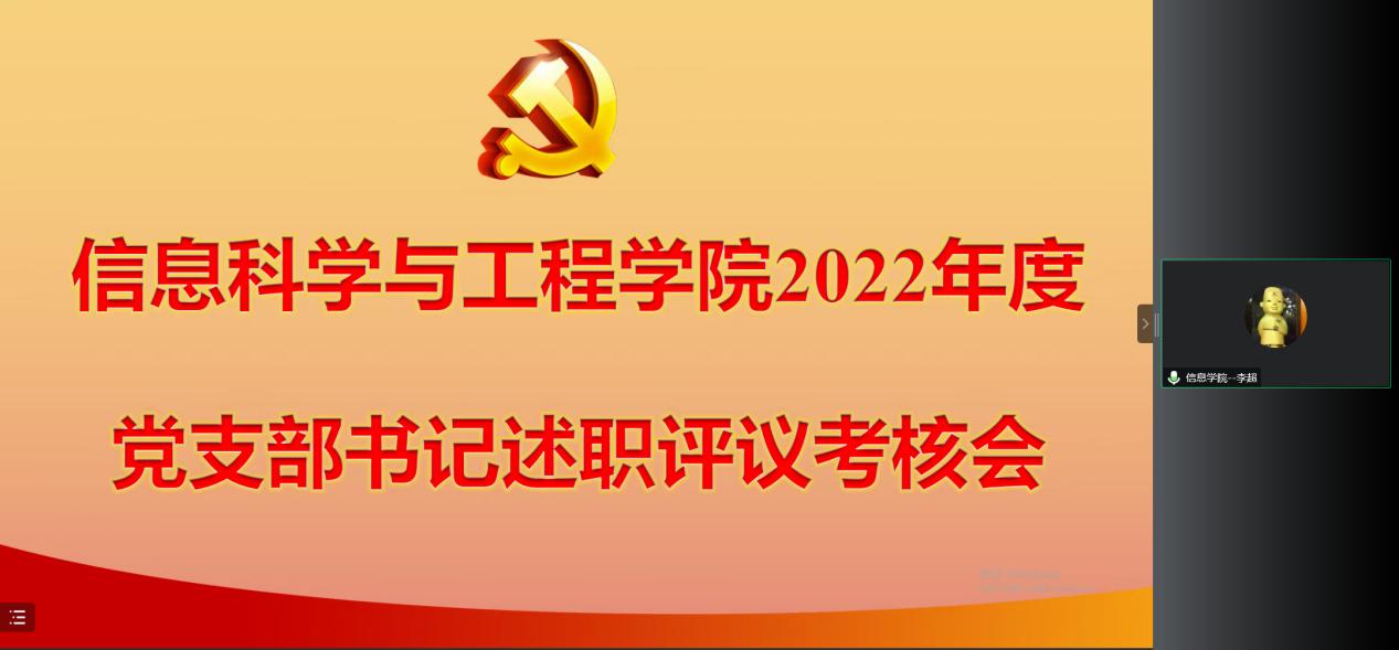 为深入学习贯彻习近平新时代中国特色社会主义思想、党的二十大精神和学校第四次党代会精神,进一步压实党支部书记履行全面从严治党责任,推动全面从严治党向基层延伸,切实提升党支部工作科学化水平,12月13日,太阳集团tyc234cc2022年度党支部书记履行全面从严治党责任和抓基层党建述职评议考核会以线上形式召开,学院党委委员、组织员、党支部书记、师生党员代表参加会议。会议由学院党委书记李超主持。