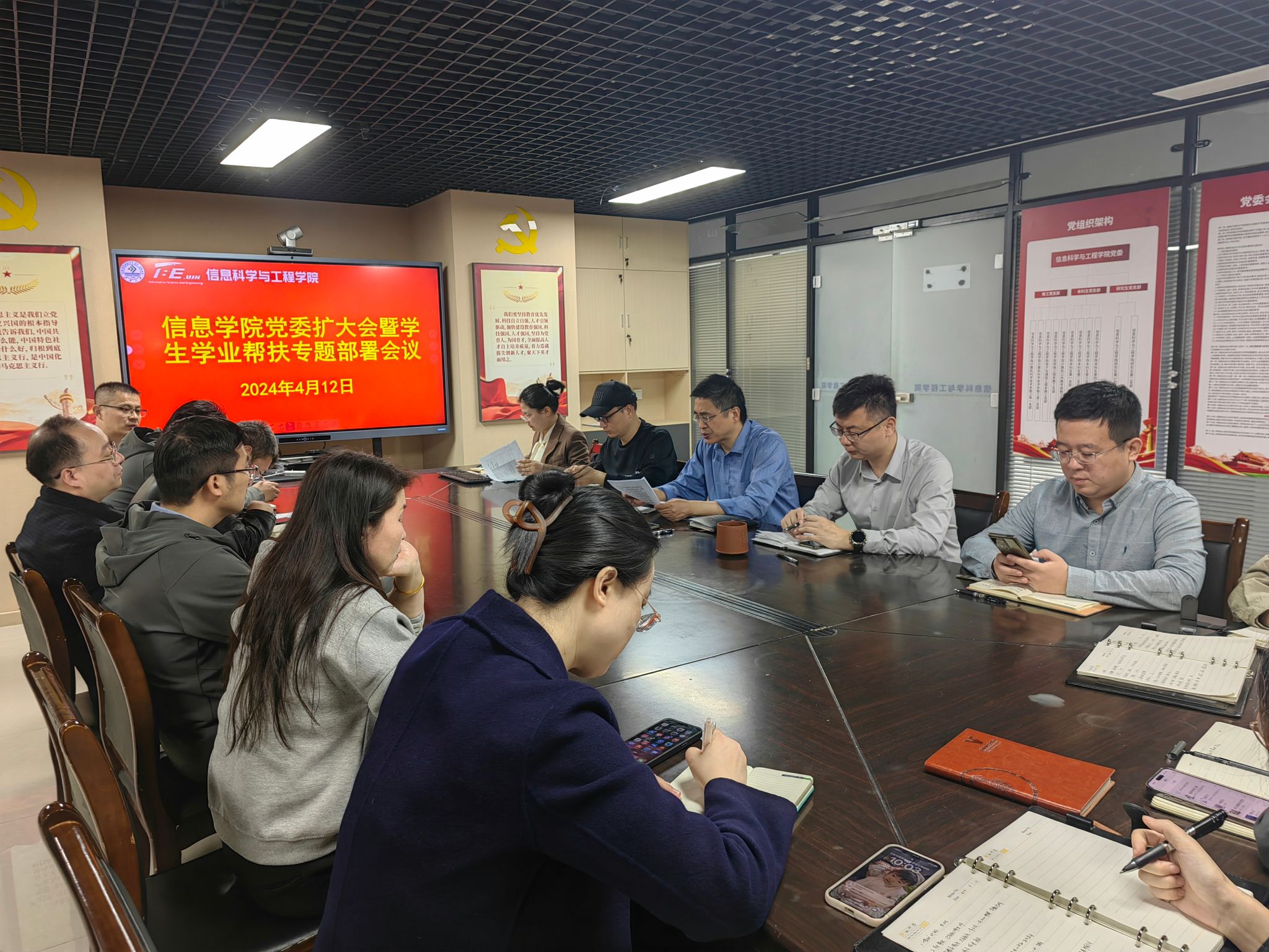 为加强学风建设,做好学生学业帮扶工作,切实提高教育教学和人才培养质量,太阳集团tyc234cc于4月12日召开党委扩大会议暨学生学业帮扶专题部署会。党委班子成员、系主任、教工党支部书记、教学管理办公室主任以及全体学生工作人员、班主任代表出席会议。