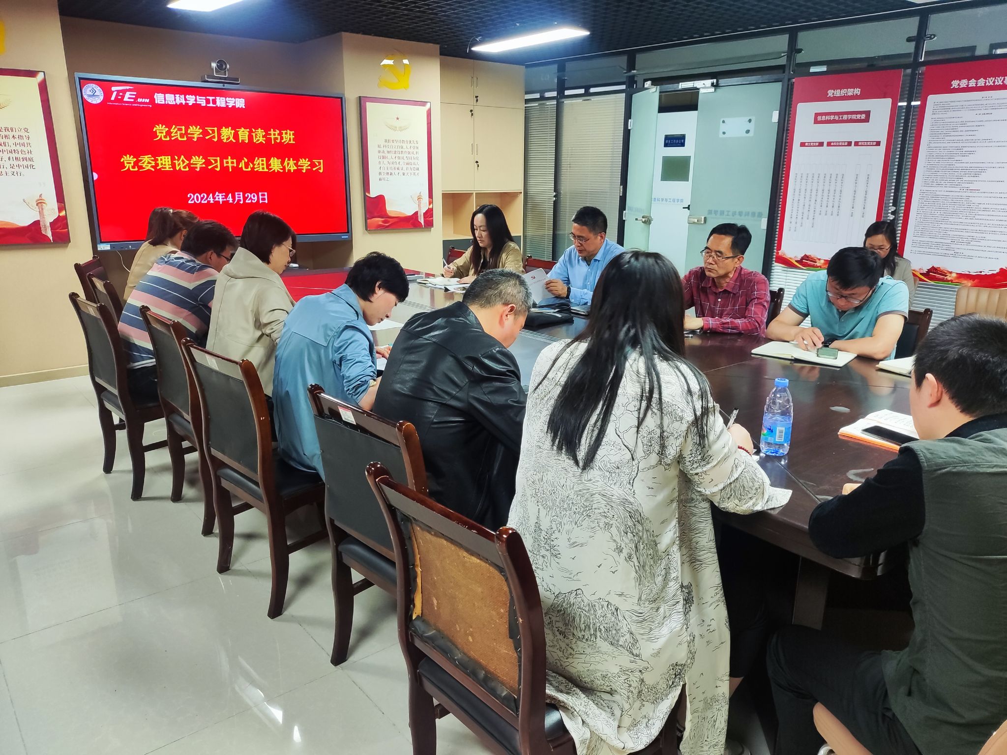 根据学校统一部署要求,4月29日下午,太阳集团tyc234cc党委举办了党纪学习教育读书班暨党委理论学习中心组集体学习,学院党委委员、院长助理、组织员、党支部书记、科级干部参加了集体学习。