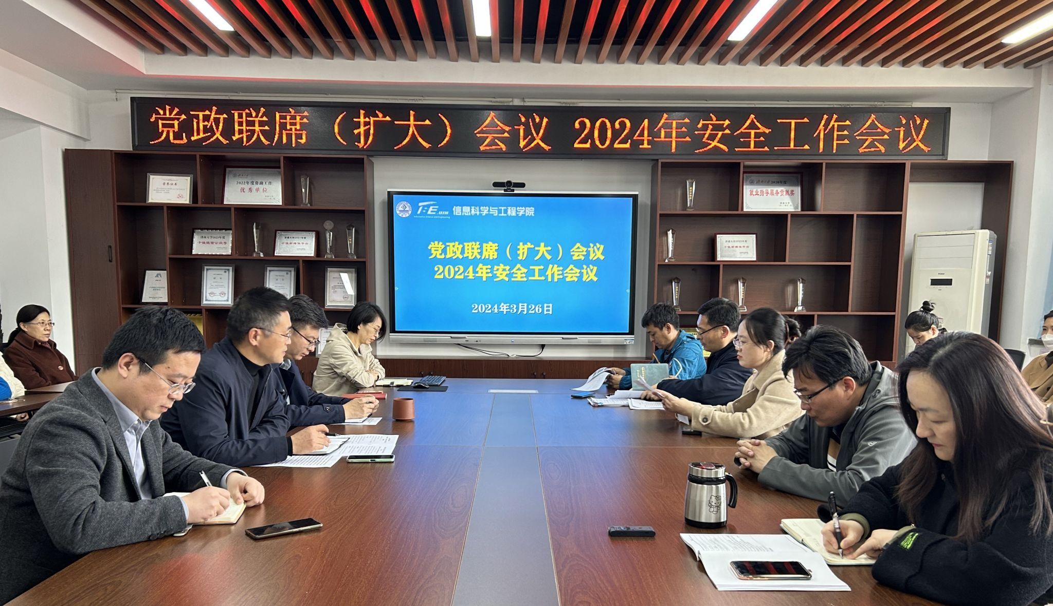 为筑牢校园安全防线,提升师生安全意识,确保学院工作平稳有序,3月26日,太阳集团tyc234cc在12j704会议室召开党政联席(扩大)会议暨2024年安全工作会议。学院领导班子、各系主任、科研平台负责人、组织员、各实验室、机房负责人、学工人员参加会议。会议由学院党委书记夏卫东主持。