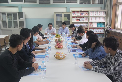 交流会开始,曲老师对材料学院的客人们表达了热切的关怀,接下来,介绍了自己组建管理服务中心的工作思路。接下来管理服务中心分管主席王同辉简单介绍了管理服务中心的下属部门和骨干成员后,由各个部门的部长依次上前具体介绍自己部门的主要工作和所举办的特色活动,尤其是历时两个月的“宿舍文明月”活动,让管理服务中心的“十百千计划”得以实施,也让整个学院的宿舍安全到达了新的高度。随后管理服务中心分管主席王同辉和徐奕瑶简明扼要地做了一下总结,其中所提到的“信息化”管理无疑是最大的亮点,建立一个学生查宿查课管理系统无疑更加方便同学们进一步了解自己的所属信息。“来到这真的就像回家一样”。徐志鹏老师如是说:“我作为原信息学院学生,此次重回信院,取经问道。是希望我们可以接受一些新颖的方式去完善我们自己的纪检中心,也希望信息学院的各位同仁们可以多多帮助我们。”