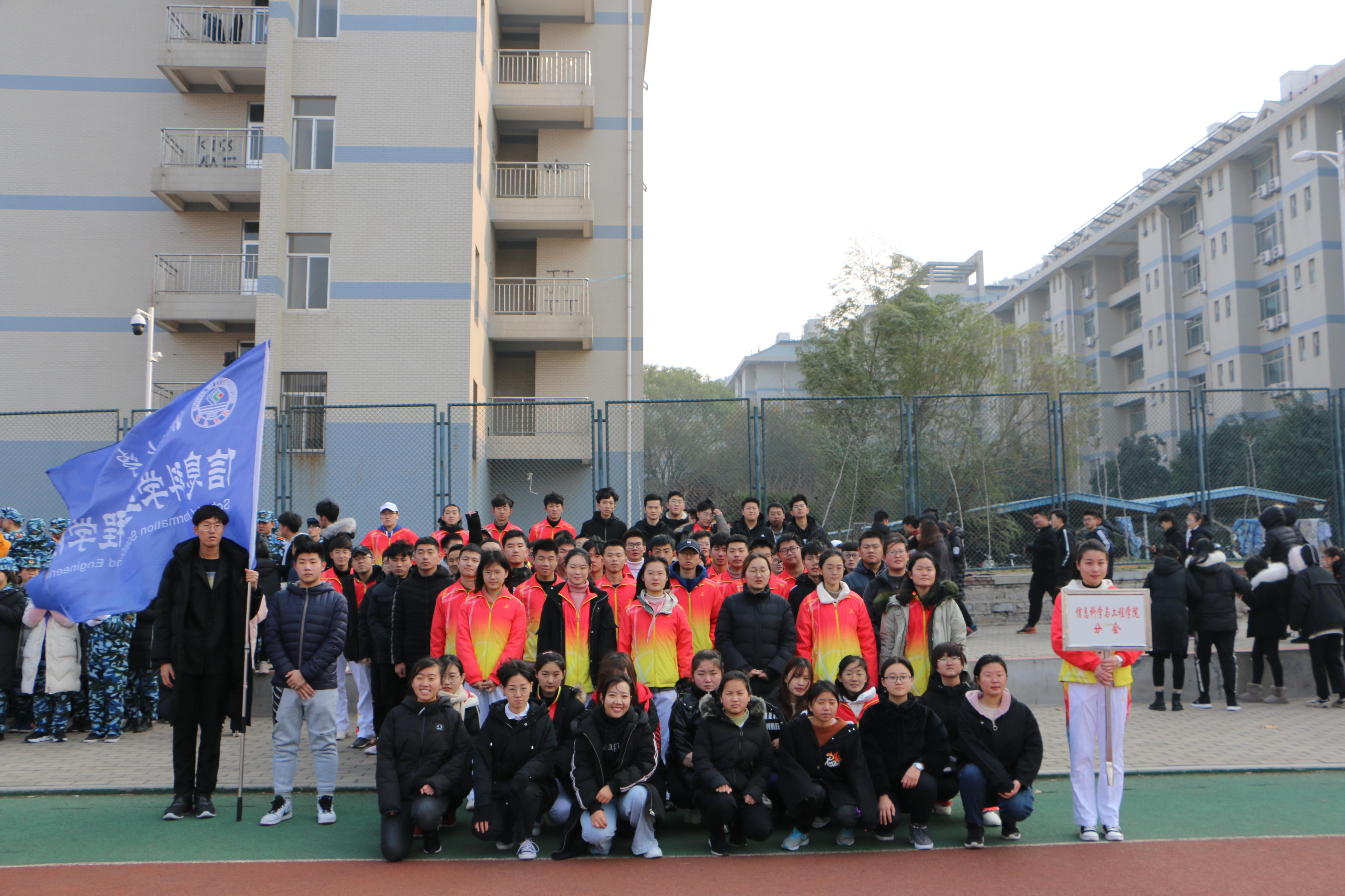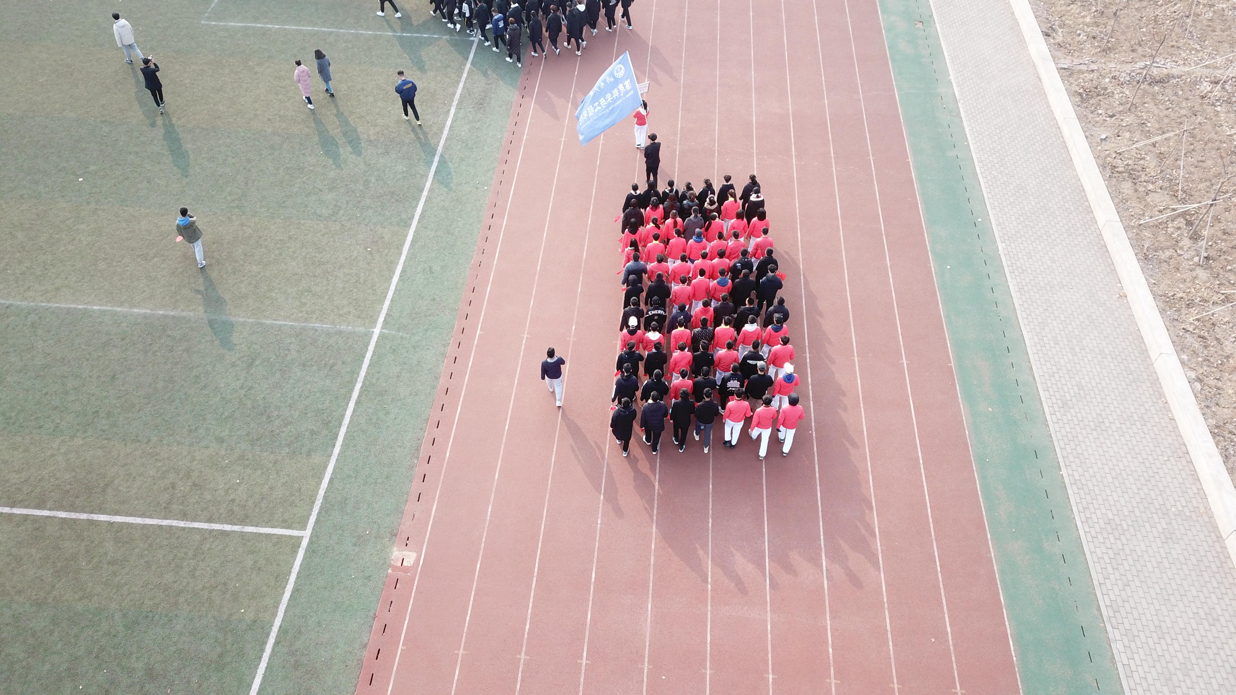 上午九时许,信息学院健步走队伍已在南苑操场集合完毕并排列好队伍,虽寒风凌冽却仍抵不过同学们饱满的热情。待国歌奏完后,我院方阵追随国旗班的步伐,在迎风飘扬的院旗之下,身穿黑衣的成员与身穿鲜红队服的成员相映衬摆出红心及“70”字样,口中高喊“勿忘国耻,砥砺前行,七十筑梦,信科先行”的洪亮口号,脚踏铿锵有力的步伐整齐前行,在南苑操场完成两圈的健步走,手握五星红旗的健步走成员们,眼神中流露出的是对祖国富强的骄傲和弘扬1 29爱国精神的坚定信念。环绕结束后全体成员共唱济大校歌,伴随着校歌的演唱停止,本次健步走活动也圆满结束。