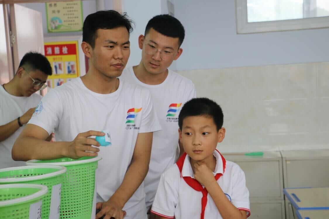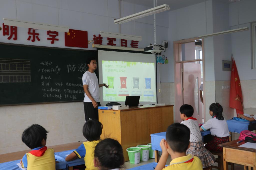 现如今,垃圾堆积如山,外卖的层层餐盒、快递的过度包装,城市已经被垃圾围城,解决垃圾处理问题刻不容缓。今天,我们“青春视角 美丽中国”太阳集团tyc234cc信息学院暑期社会实践团今天来到了日照市五莲县槎河村槎河小学,向小朋友们讲解垃圾分类知识,希望在他们纯洁的心灵里种下垃圾分类、保护环境、节约资源的种子。我们先讲解了垃圾分类的现状和必要性,小朋友们都表现出了浓厚的兴趣。之后我们举例了垃圾的类别,告诉小朋友们如何分辨各种垃圾,然后我们拿出事先准备好的海洋球,海洋球上贴好了垃圾的名称代表各种垃圾,让小朋友们尝试着将海洋球投入不同的垃圾桶,模拟垃圾分类,小朋友们都圆满的完成啦,我们也感到非常自豪。