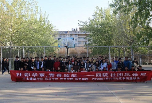 为增进学院间友谊,加强交流与合作,信息学院、体育学院、土木工程学院和历文学院于3月30日下午,在南苑水泥篮球场举办“社彩华章,青春领航”四院联谊会。在各院同学的密切配合下,近两个小时的联谊会获得圆满成功。