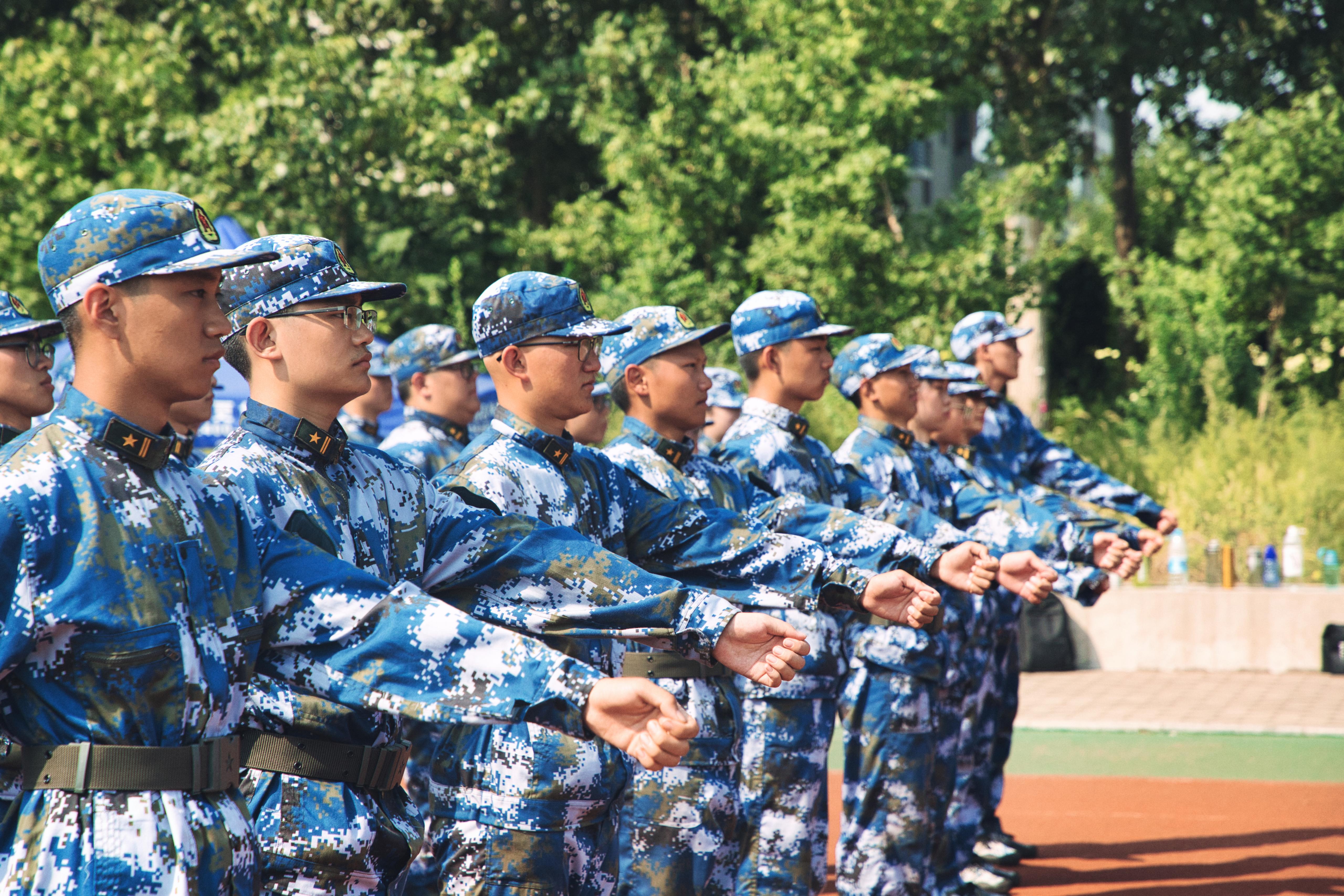 “军训是大学生入学必将经历的过程,除了学术上的思考和积累,坚定的心智和耐力也是一位合格的大学生所必须拥有的。”每一次坚持,每一次调整,都是同学们对自己的挑战,坚毅的脸庞,顽强的身姿,笔挺的军装,在红色的跑道上,组成了一幅和谐而完美的画面。欲与烈日试比强,太阳晒黑了我们的皮肤,却铸就了我们的坚强。