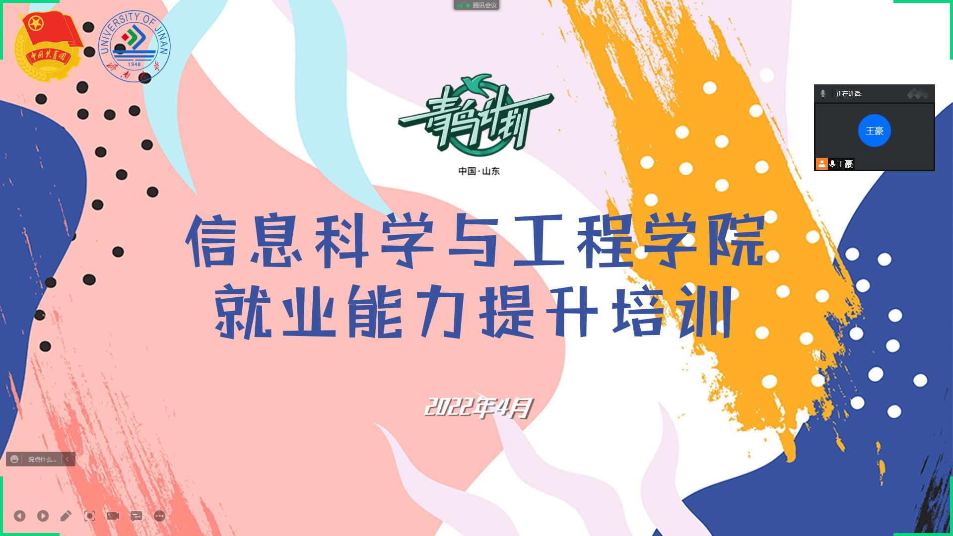 为提高就业能力,增强就业本领,把握就业机遇,助力疫情期间择业就业,2022年4月24日,太阳集团tyc234cc团委积极响应团省委联合省人社厅推出的“青鸟计划”,开展线上就业能力提升培训会,号召学院学生积极参与各类实习活动,提升核心就业能力。本次培训会由王豪老师主持,太阳集团tyc234cc学生参加会议。