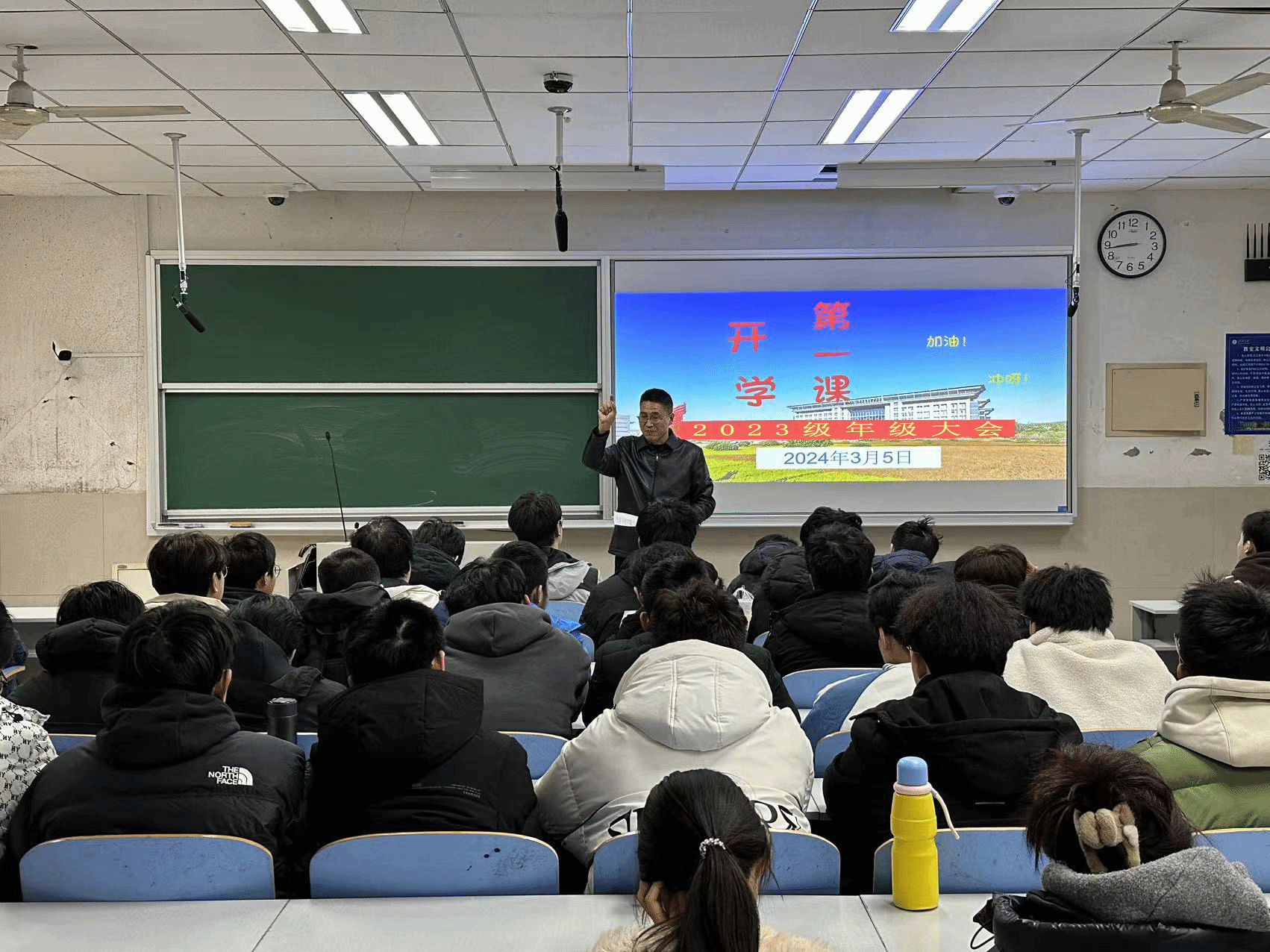 在2023级年级大会上,夏卫东以“学习不能停,颗粒度对齐才能赢”为主题,对同学们上学期的学业成绩、学风建设、寝凤建设和学期规划等进行了全面的总结,并提出了四点期望:一是制定新学期学习计划,并始终秉承学习初衷;二是积极与老师同学们沟通交流,加强班风学风建设;三是加强个人财产和人身安全意识,提高自我保护能力;四是积极参与党团活动,坚定理想信念,自觉提高政治素养。他鼓励大家“凡事预则立,不立则废”,希望同学们尽快调节懈怠的脚步,收拢懒散的心思,卯足学习的劲头,珍惜好时光,练就新本领,争做新时代有为青年,为将来建功立业打好坚实的基础。随后,辅导员孟莹从电信网络诈骗、心理健康、卫生防疫等方面进行了安全教育。