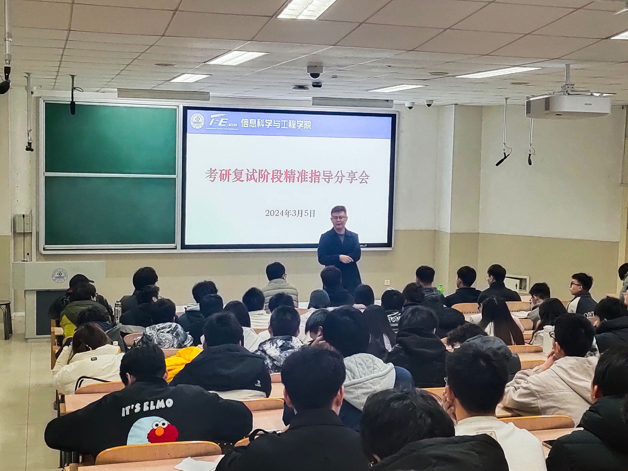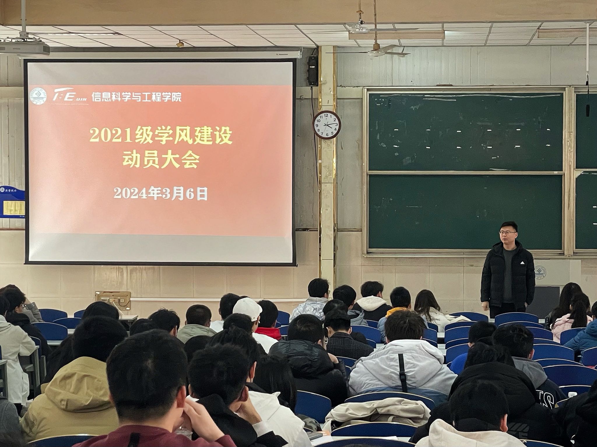 在2021级年级大会上,郝伟从2024年学院学子考研初试实际情况出发,为同学们分析了当前考研形势,表达了对同学们的殷切期望。学院邀请专业老师为大家做考研指导,从考研上岸必备素质、院校专业如何选择、当前阶段复习任务等方面进行了详细介绍。最后,辅导员丁铮结合个人求学经历与工作经验,与同学们进行了关于合理择校、科学备考的交流分享。她鼓励大家将“行动”和“努力”作为新学期的关键词,发扬持之以恒、水滴石穿的精神,增强学习主观能动性,结合个人目标与未来发展方向进行合理规划并付诸实际行动。