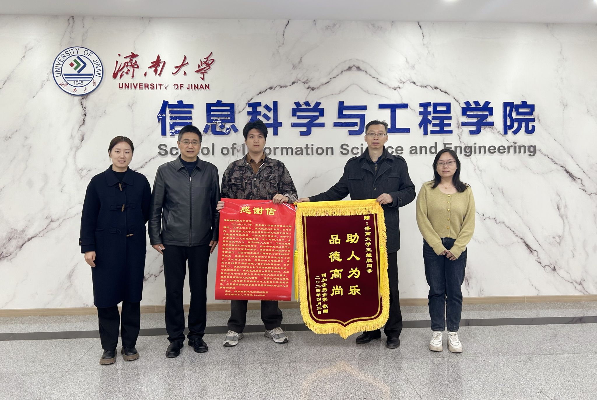 4月3日下午,信息科学与工程学院收到了一封感谢信和一面锦旗,信中详细描述了我院2021级集成2101班学生王继胜同学帮助3岁走失儿童找到父母的事迹。