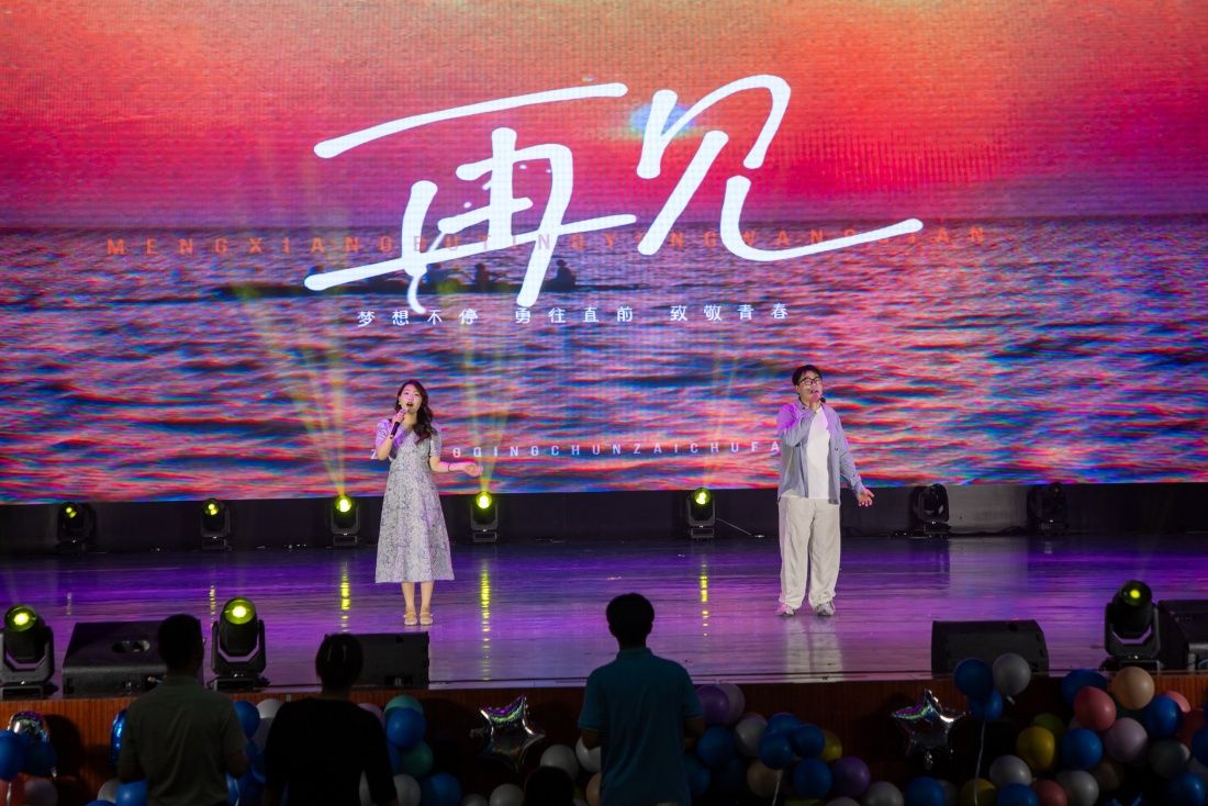 晚会在音乐学院带来的开场舞《冰凌花》中拉开了序幕,舞者们动作流畅而富有力量,将音乐的节奏与舞蹈的韵律完美结合,献上一场视听盛宴。随后,学院组织员李童童带来独唱歌曲《我爱你中国》,歌声中饱含着对祖国的热爱与敬意。乐队《夜空中最亮的星》旋律响起,时而清越悠扬,仿佛流淌着往日青涩的校园时光,时而激昂有力,鼓励毕业生们不惧挑战,勇往直前,追寻属于自己的那片星空。诗歌朗诵《廉洁颂》歌颂了廉洁自律的高尚品质,勉励毕业生们在未来的人生道路上保持清正廉洁的品格,树立正能量;《送别》传达了毕业生们于毕业之际对母校、老师、同学们深深的眷恋,洋溢着对过往的怀念和对未来的期许。2020级毕业生程至夏和唐跃溪带来的《光阴的故事》《起风了》《再见》三首经典歌曲串烧引领全场师生重温青春岁月,歌声中饱含的深情让许多毕业生潸然泪下。在舞蹈节目《相亲相爱一家人》中,舞蹈者们以优美的舞姿深情演绎往日时光,在灯光与音乐的映衬下,用肢体语言讲述着关于爱的故事。全体师生亲如一家,无论毕业生们未来前往何处,母校将永远是他们坚实的依靠。