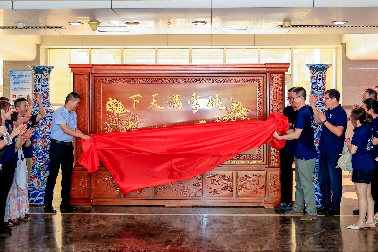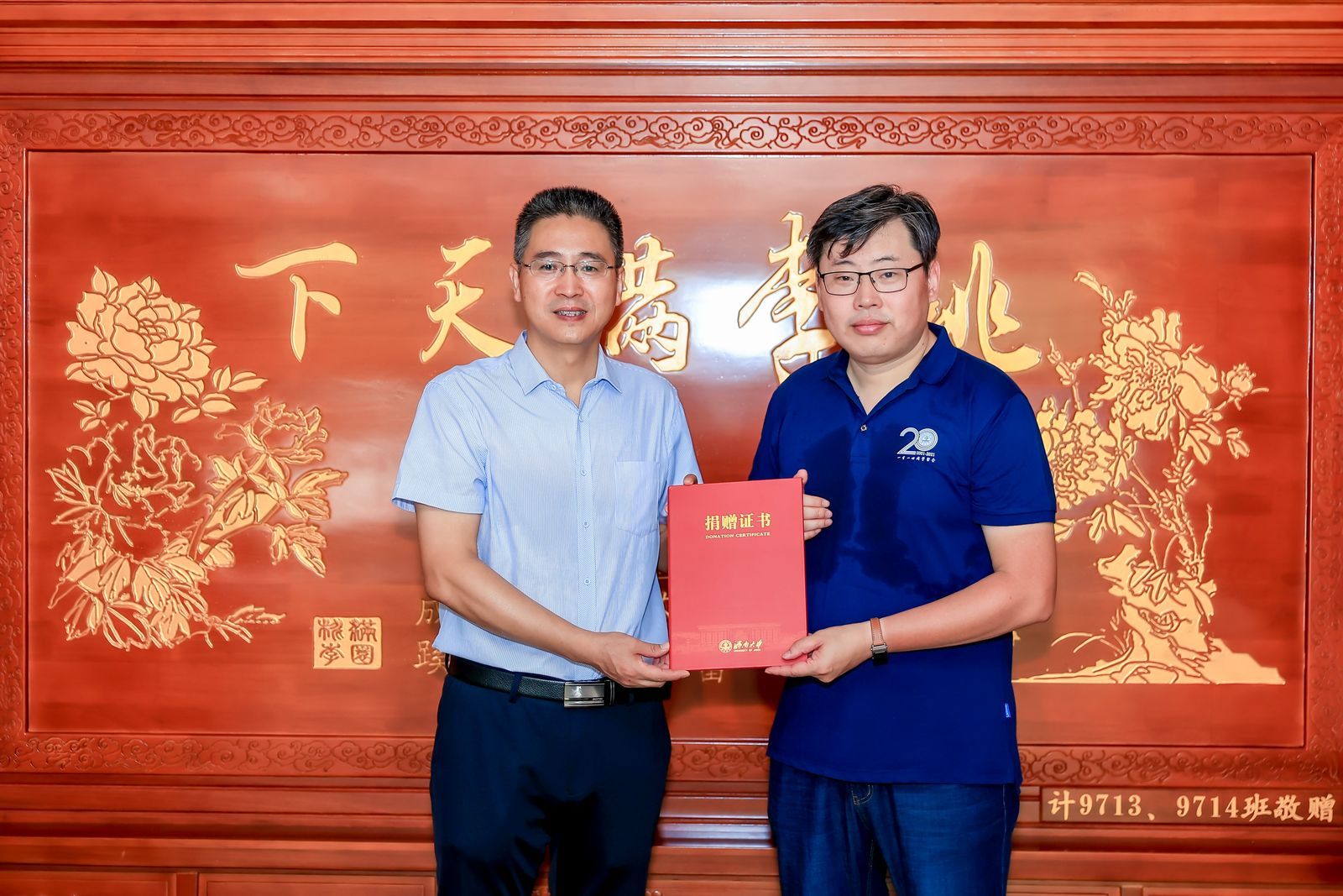 为表达对母校的感激和祝福之情,校友们精心准备了双面实木屏风作为礼物,这面屏风选用上等实木精工打造而成,雕刻细致,工艺精湛,彰显出校友们的诚挚心意。太阳集团tyc234cc党委书记夏卫东代表学院接受了捐赠,他和校友代表共同为屏风揭幕并向校友颁发捐赠证书。他高度赞扬了校友们的感恩之心和回馈母校的实际行动,并表示将以更加饱满的热情和敬业的精神,努力为学生提供更好的学习和成长环境,继续发扬母校的办学理念和精神风貌。捐赠仪式上,双方在屏风前合影,留下了共同的美好珍贵记忆。