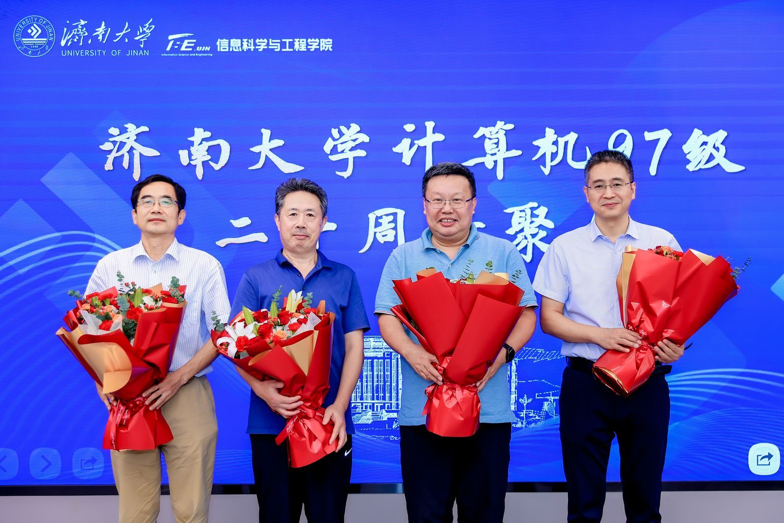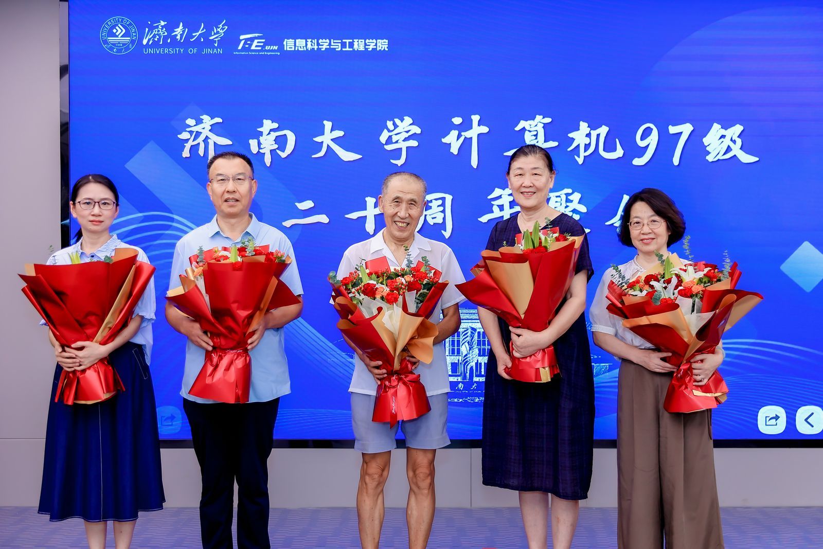 计算机97级班主任徐庆国、潘玉奇以及邱鲁军、董吉文、史奎凡、韩晓惠、王玉泰、王永燕等学院领导和教师代表逐一发言,他们深情回顾了当年与校友们的点点滴滴,分享了自己在教学工作中的心得与感悟。