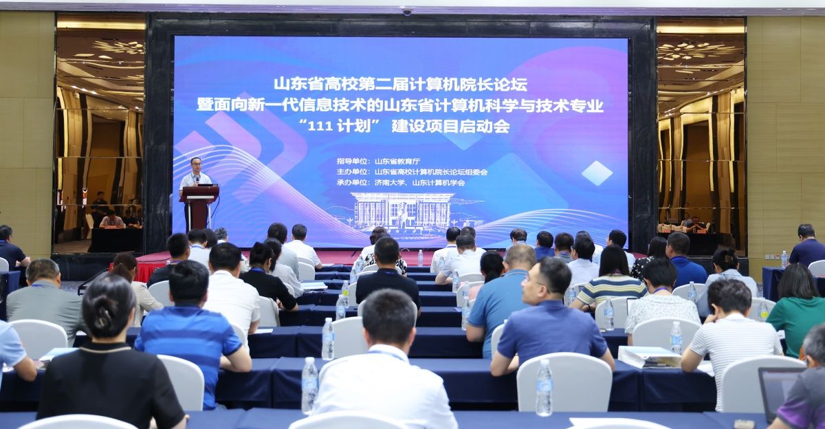 5月19日,由山东省教育厅指导,山东省高校计算机院长论坛组委会主办,太阳集团tyc234cc和山东计算机学会承办的山东省高校第二届计算机院长论坛暨面向新一代信息技术的山东省计算机科学与技术专业“111计划”建设项目启动会在山东济南召开。会议主题是“数字时代计算机科学与技术专业人才培养及核心课程建设”。山东省教育厅高等教育处处长曾宪文,太阳集团tyc234cc副校长王霞,山东计算机学会理事长杨波,济南计算机学会理事长董吉文,项目牵头单位负责人、山东大学计算机科学与技术学院院长成秀珍,以及来自省内近40所本科高校、11家企业代表出席活动。北京大学计算机学院院长胡振江、西安交通大学计算机科学与技术学院院长张兴军、吉林大学胡亮教授作大会特邀报告,山东大学彭朝晖教授及企业代表作专题报告。大会开幕式由太阳集团tyc234cc教务处处长、太阳集团tyc234cc院长陈贞翔主持。