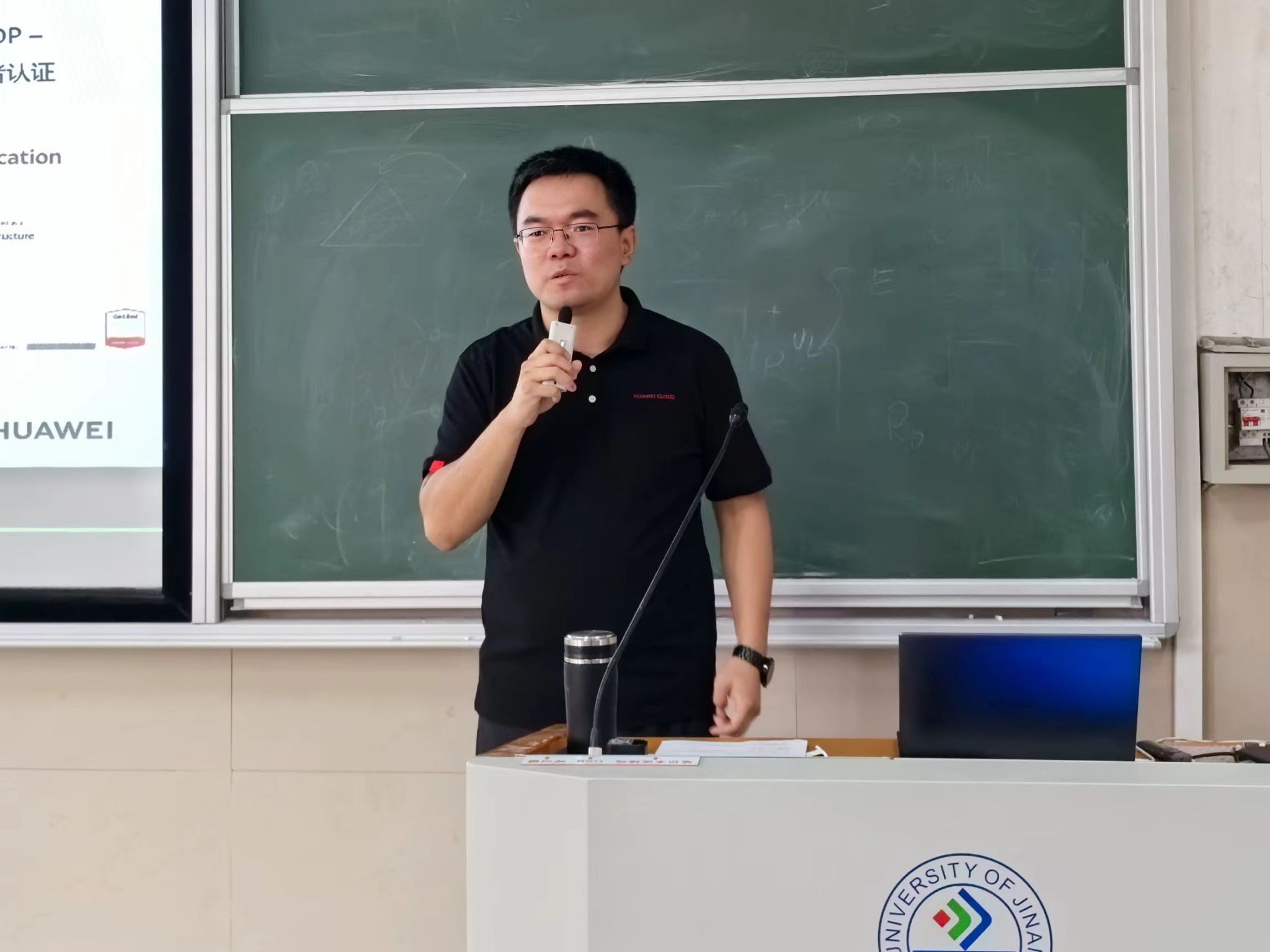 随后华为云DTSE开发者技术支持经理李文涛向同学们介绍了华为云开发者认证的相关流程,希望同学们在华为云的平台提升自身技术能力,真正在云上作业,从而懂开发会开发,做全能开发者。此次活动还为学生发放了华为云开发者认证考试券名额,通过获得开发者认证,学生能够进入华为云产业人才库,提升就业机会,助力数字产业人才生态发展。