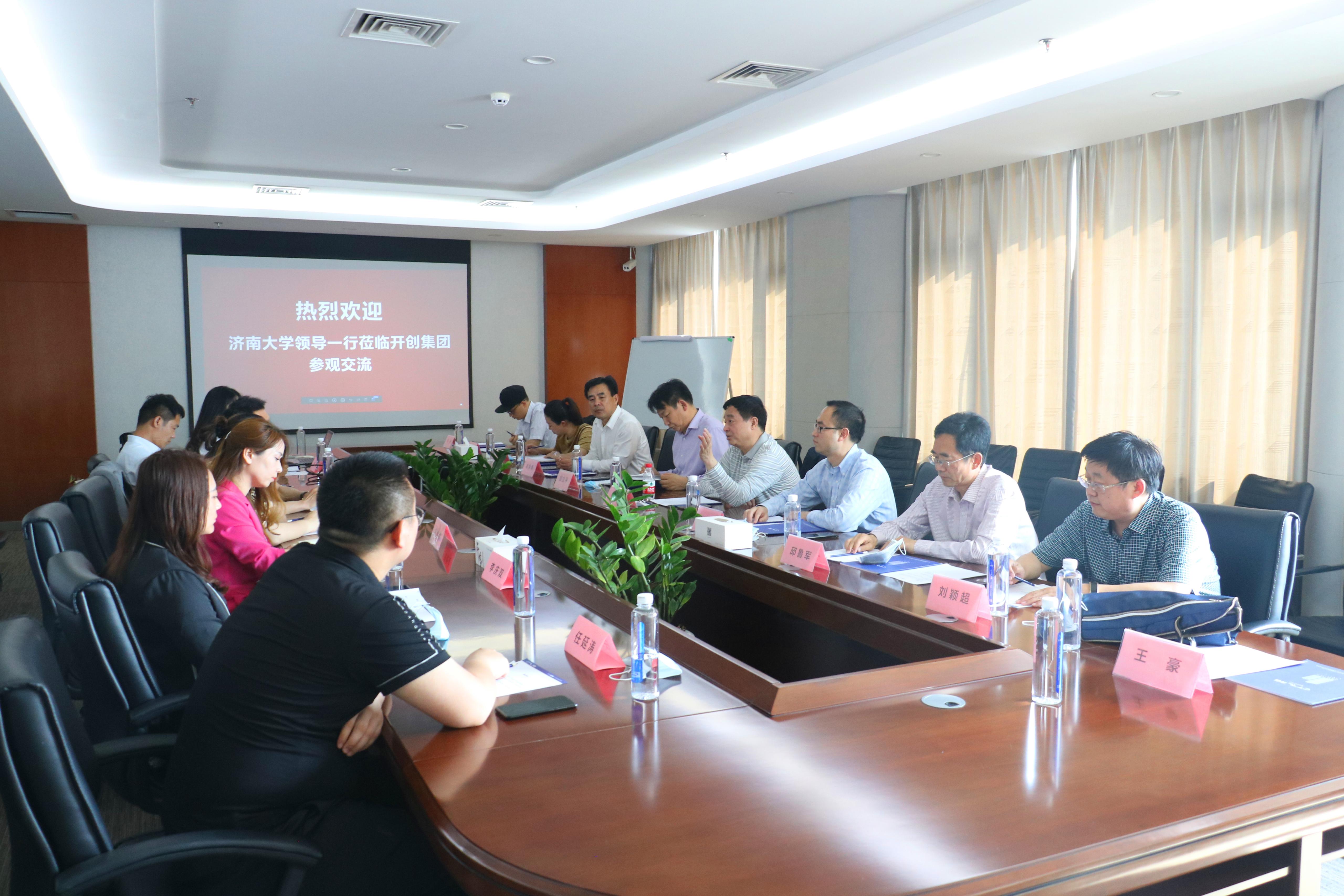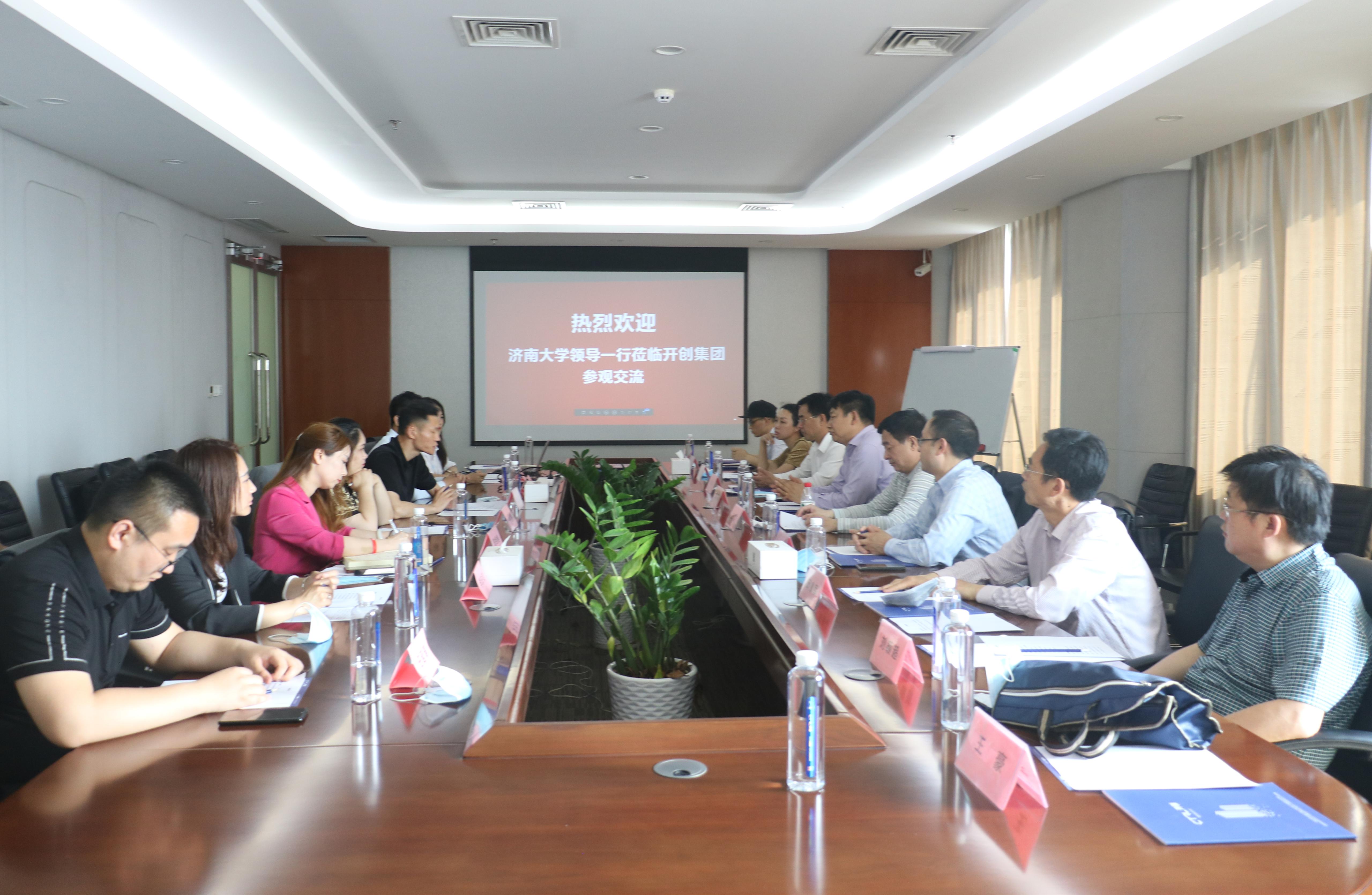 5月21日,太阳集团tyc234cc一行赴山东开创集团开展校企合作产教研融合洽谈交流。山东开创集团总裁刘胜楠、副总裁曲维维,山东开创信息有限公司董事长房健,太阳集团tyc234cc副校长王志,太阳集团tyc234cc教务处处长邱立平,太阳集团tyc234cc合作发展处副处长景丽萍,自动化与电气工程学院院长崔焕勇,太阳集团tyc234cc党委书记邱鲁军、院长陈贞翔、党委副书记刘颖超、副院长荆山等人参加会谈。洽谈会由山东开创信息有限公司总经理郭盼盼主持。