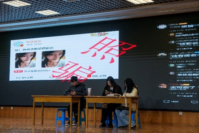 自大赛启动以来,学院高度重视,积极响应,面向全院学生广泛征集剧本创意。经过多轮筛选,聚焦“滤镜破碎下的朋辈支撑”核心主题的原创剧本《滤镜》脱颖而出。该剧以现实生活为蓝本,讲述了优秀学子林星在保研之路遭遇挫折后,陷入自我怀疑与焦虑的困境,最终在辅导员的悉心引导、室友的真诚陪伴以及学长的经验分享等朋辈力量的温暖助力下,逐步调整心态、直面困境、实现自我突破的成长故事,剧情贴近学子生活,情感真挚动人。
