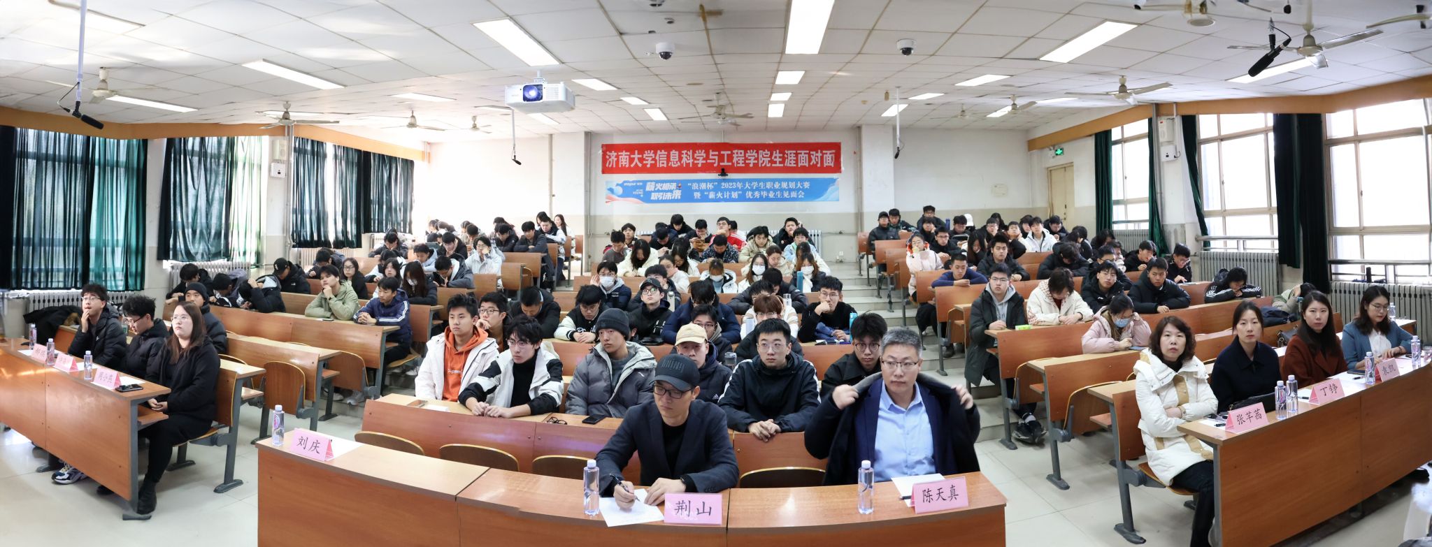 为贯彻落实党中央、国务院关于高校毕业生就业工作的决策部署,落实《国务院关于印发“十四五”就业促进规划的通知》精神,加强高校生涯教育和就业指导,搭建在校学生与优秀毕业生的沟通交流平台,进一步增强学生对就业流程的理解,以科学的方法规划个人职业生涯,11月25日上午,太阳集团tyc234cc在11教1101举办了“生涯面对面”优秀毕业生见面会暨“浪潮杯”2023年大学生职业规划大赛启动仪式,太阳集团tyc234cc副院长荆山、浪潮优派副总经理陈天真出席活动。学院辅导员、班主任代表及浪潮校企合作专业近200名学子参加活动。